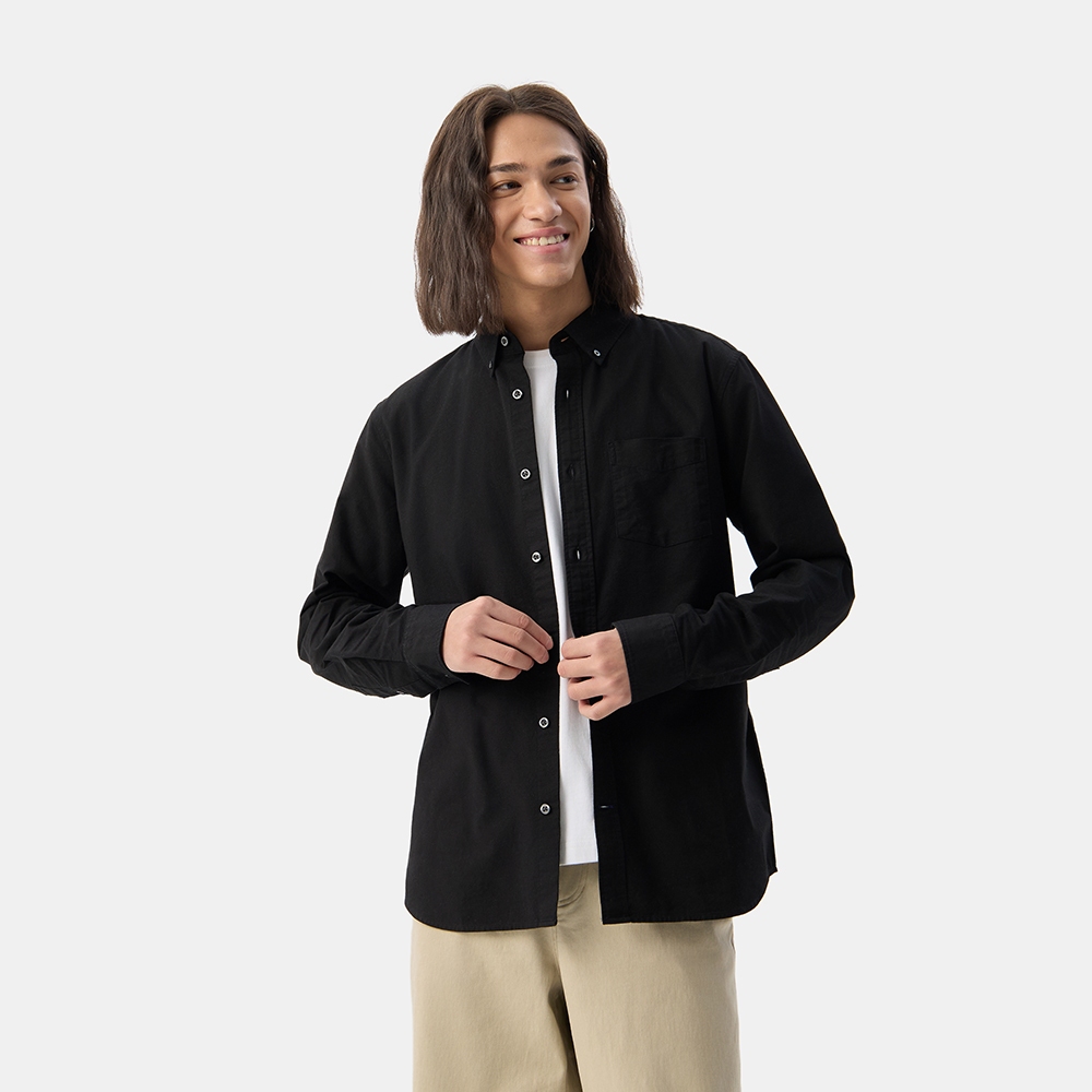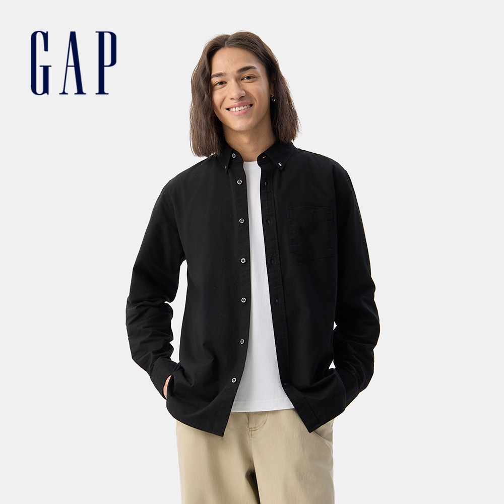 Gap 男裝 純棉翻領長袖襯衫-黑色(514274)XS|S|M|L|XLShirtsGap官方旗艦店