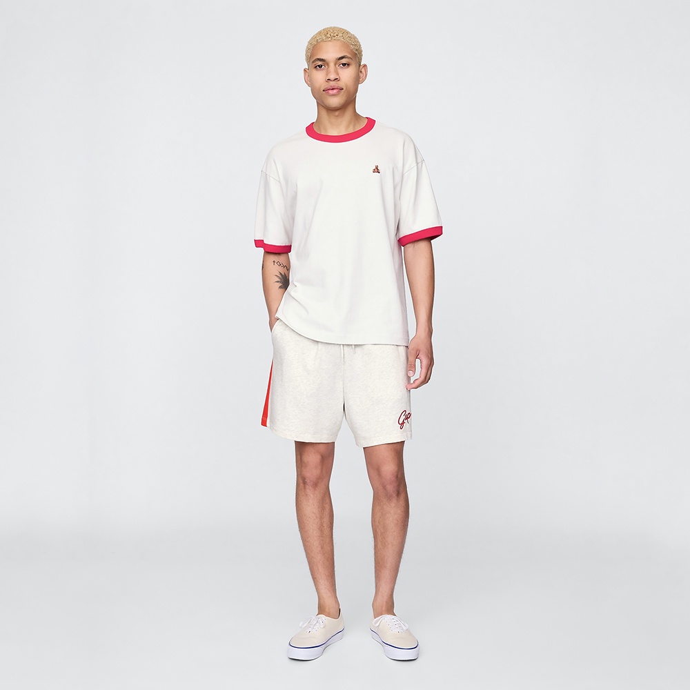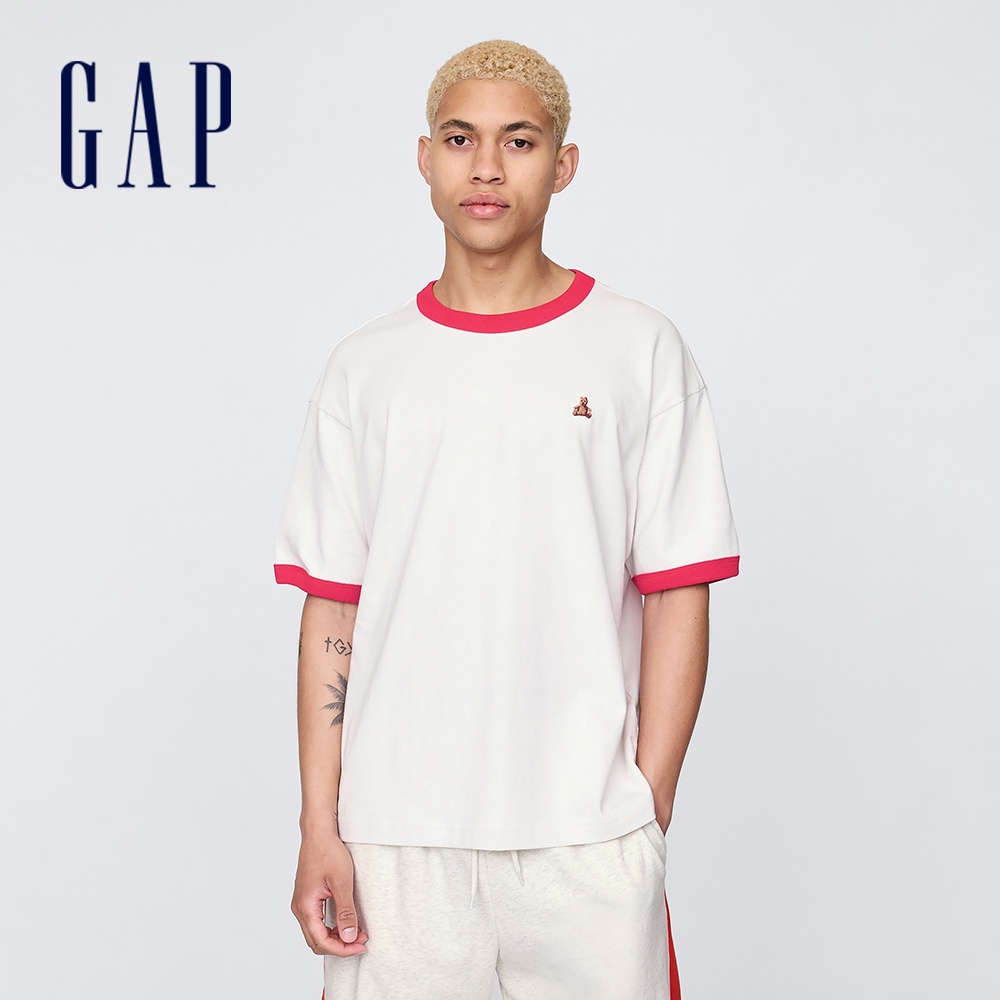 Gap 男裝 純棉小熊刺繡圓領短袖T恤-紅色(765037)XS|S|M|L|XLT-ShirtsGap官方旗艦店