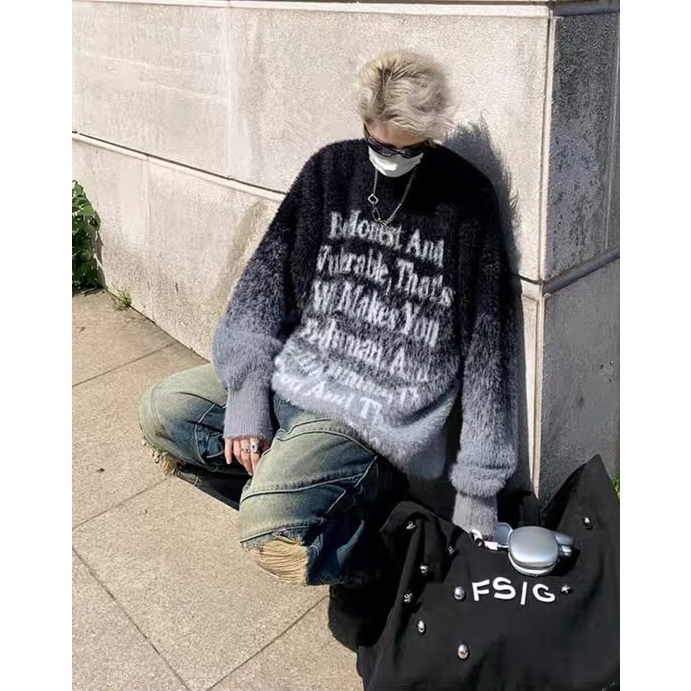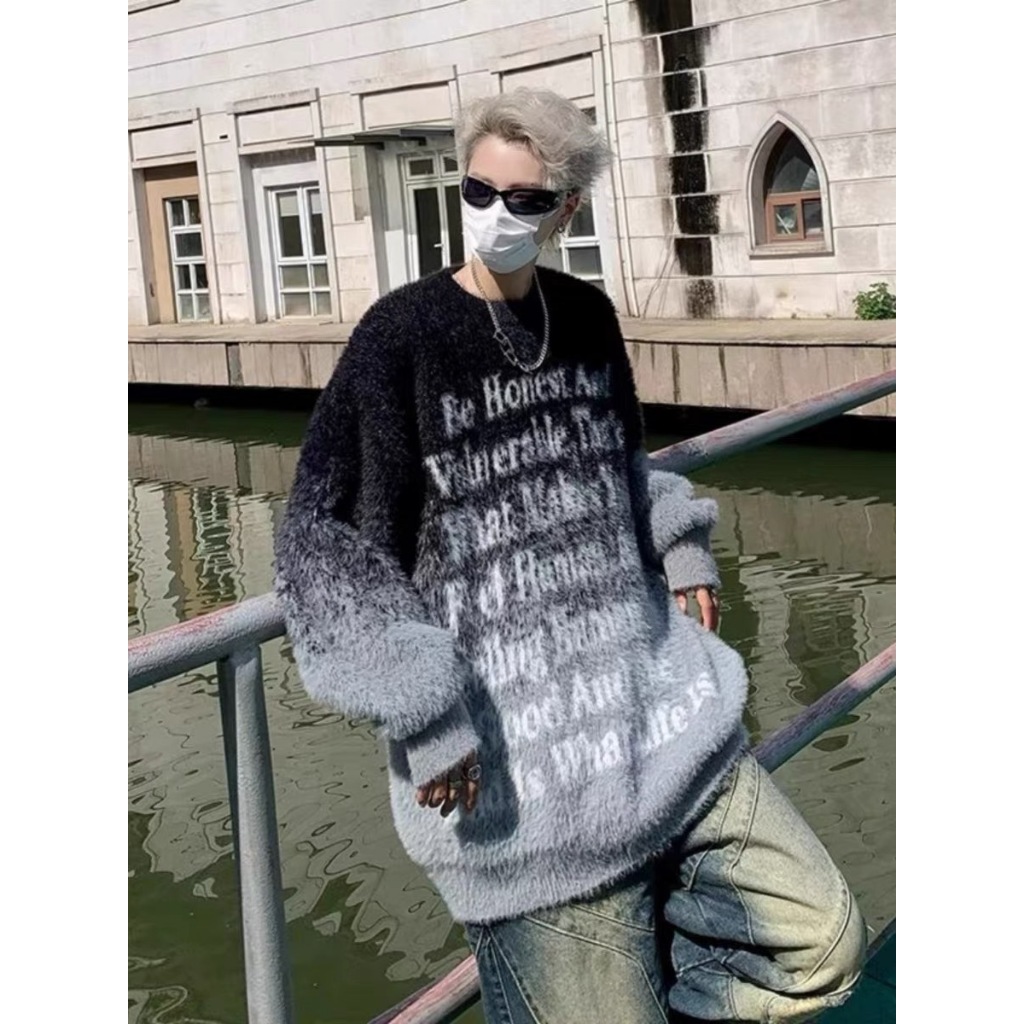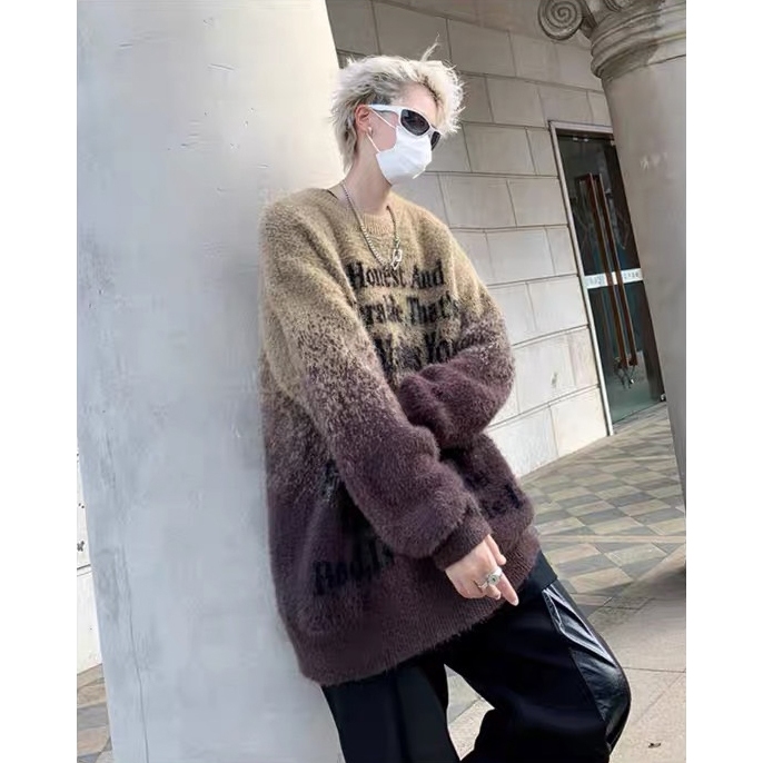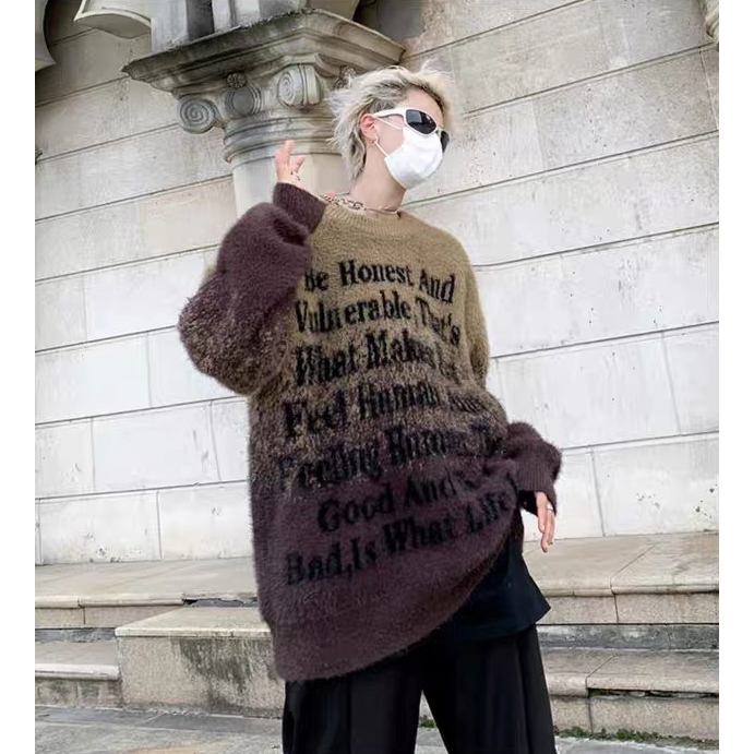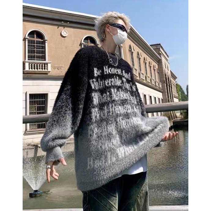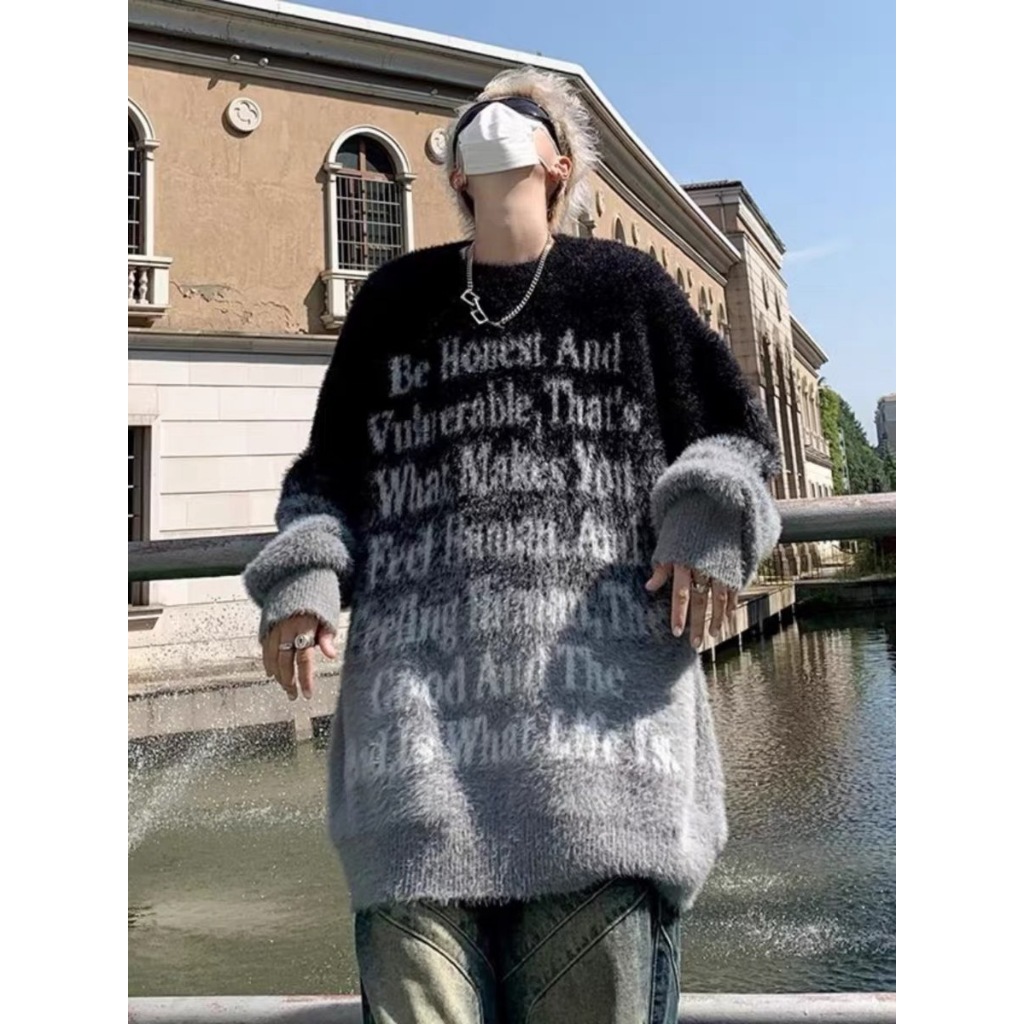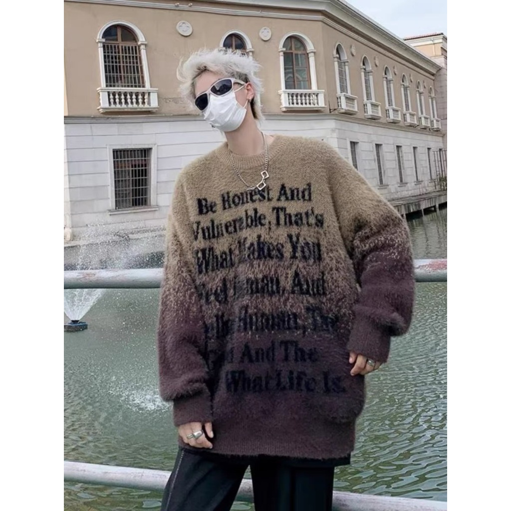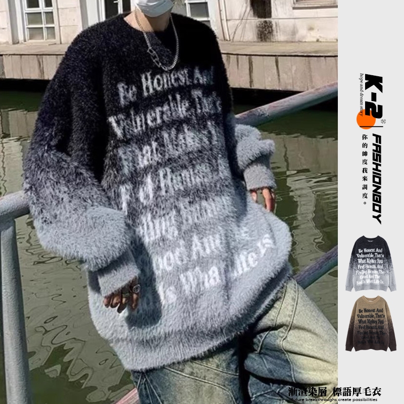 【K-2】街頭帥哥 把咩神衣 漸層渲染 英文標語 寬鬆毛衣 針織毛衣 厚毛衣 秋冬保暖 長袖 毛衣 針織【D8869】黑白色,M|黑白色,L|黑白色,XL|黑白色,XXL|咖色,M|咖色,L|咖色,XL|咖色,XXLK-2 Fashionboy