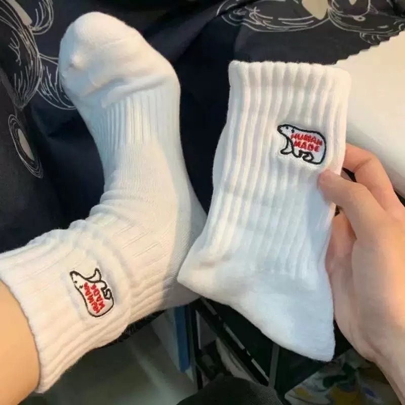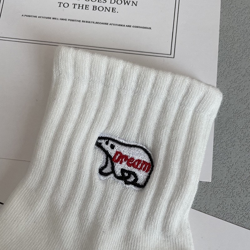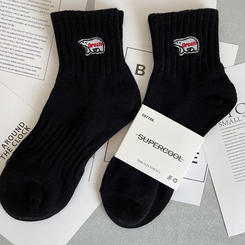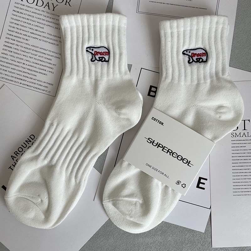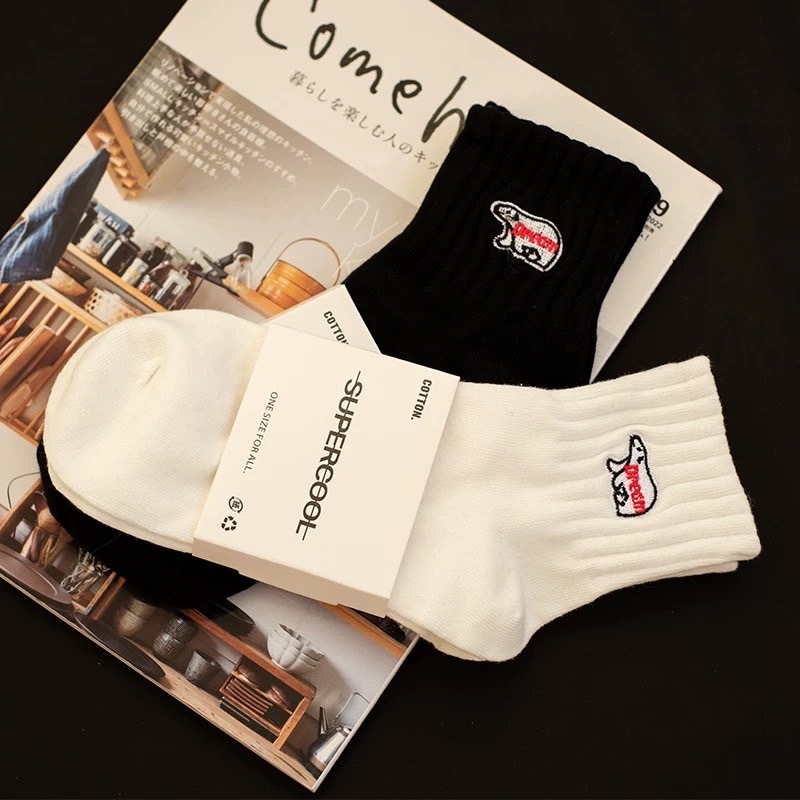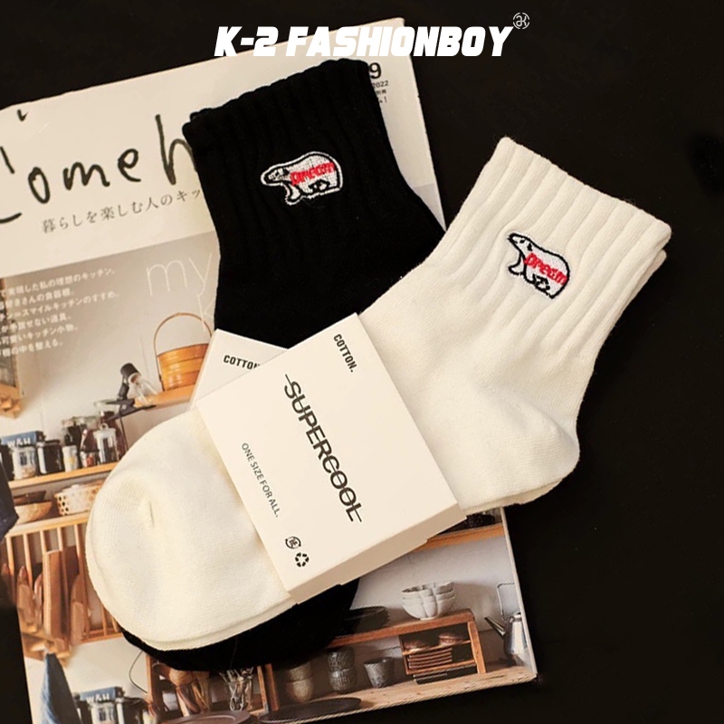 【K-2】北極熊 刺繡 黑白刺繡 中高筒襪 運動襪 情侶襪 長襪 潮襪 韓國襪 襪子 男襪 女襪 吸汗防臭【KM136】中筒白|中筒黑|高筒白|高筒黑K-2 Fashionboy