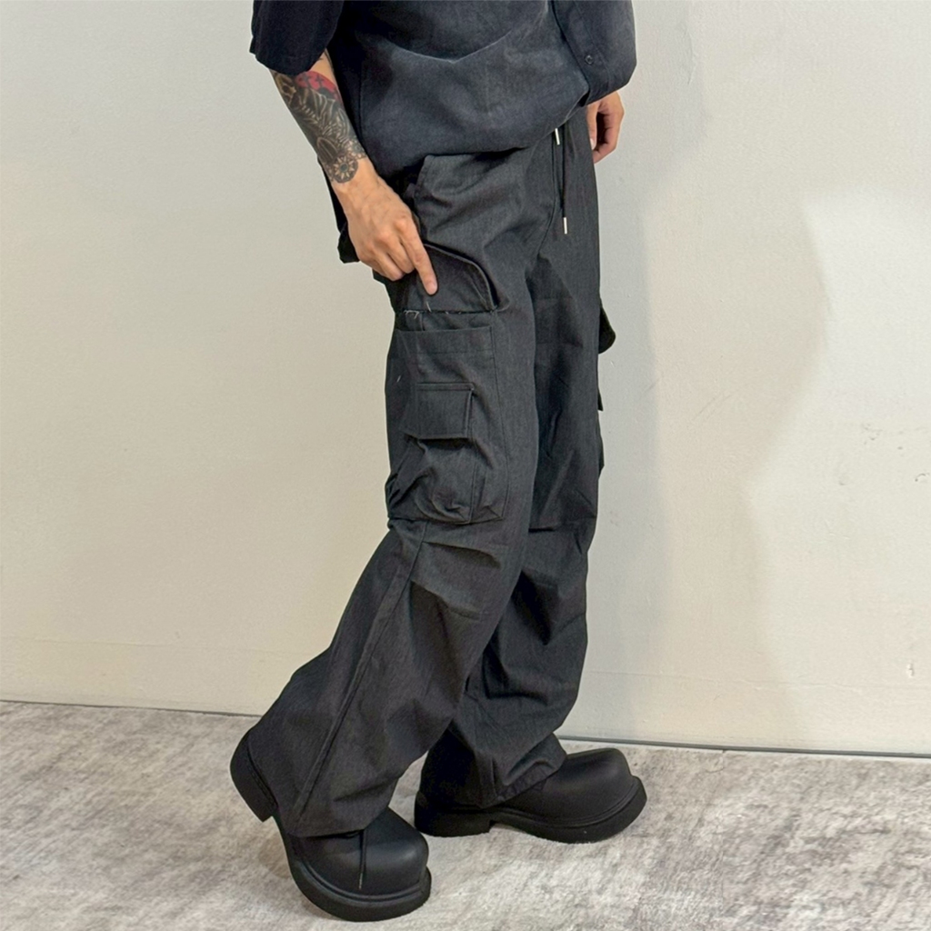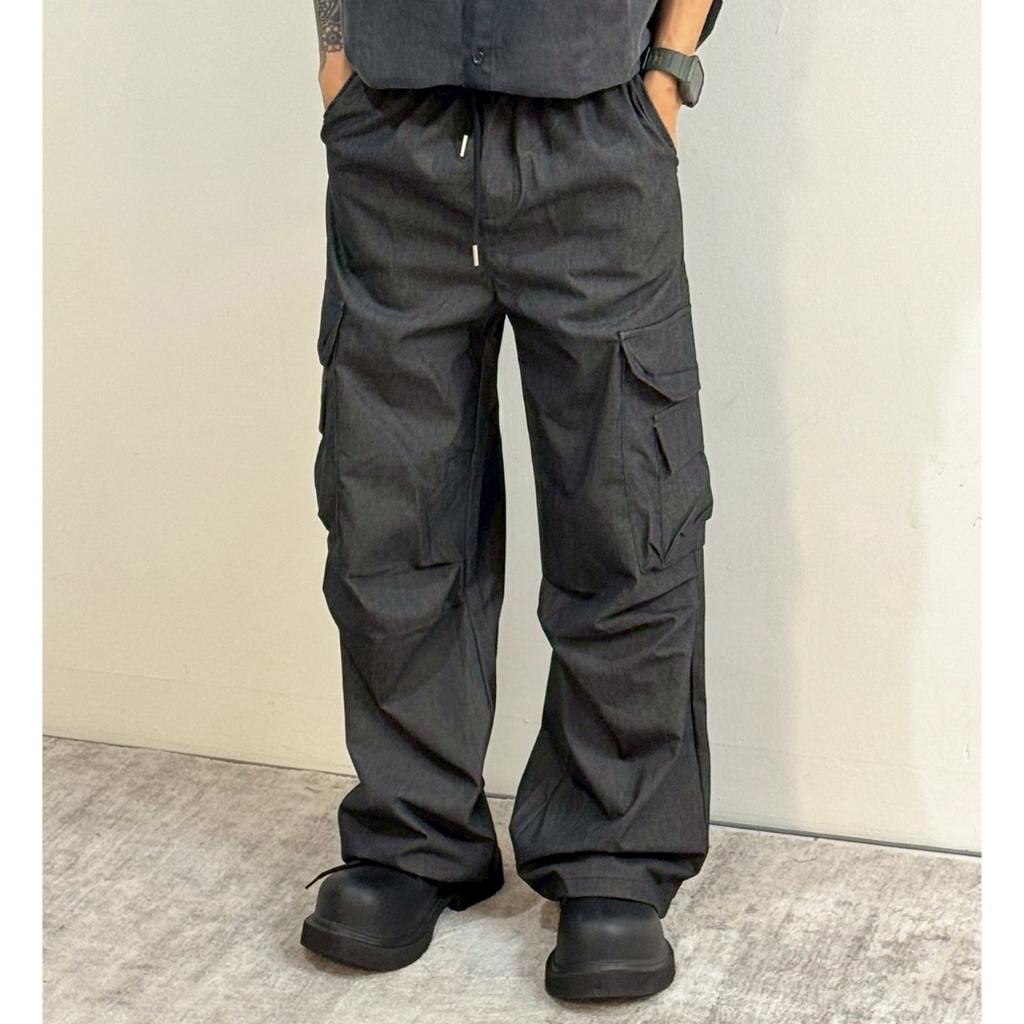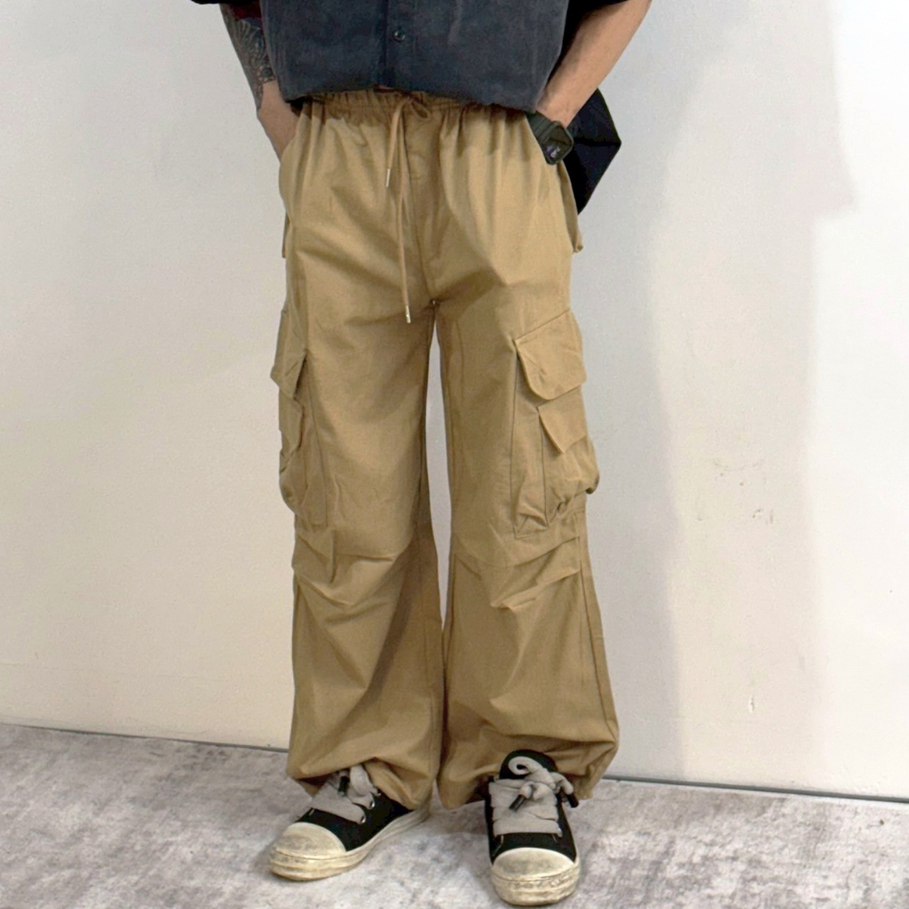 【K-2】美式休閒 傘兵皺褶 工裝寬褲 束口褲 山系 大口袋 直筒寬褲 休閒長褲 造型長褲 壓褶 長褲【K3516】