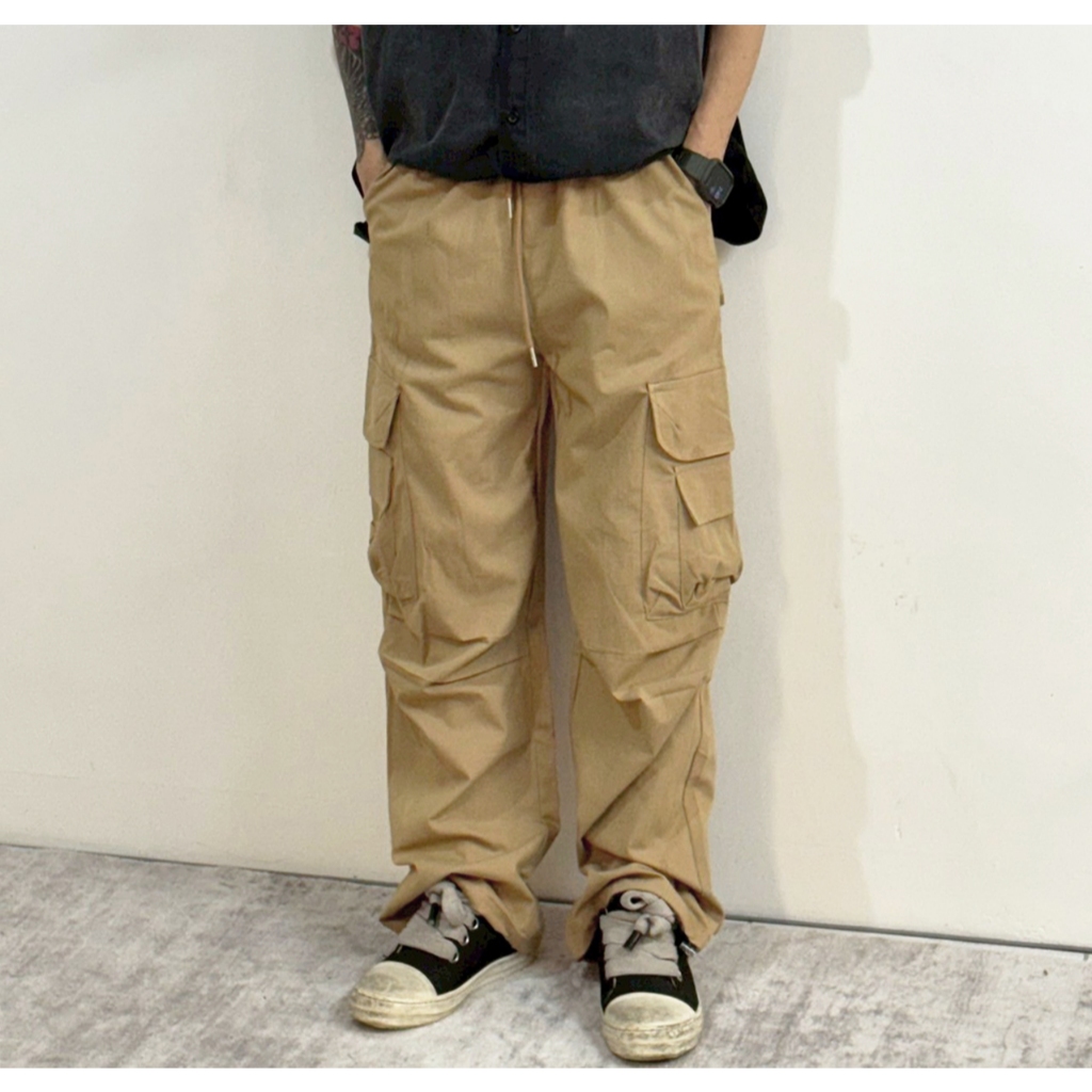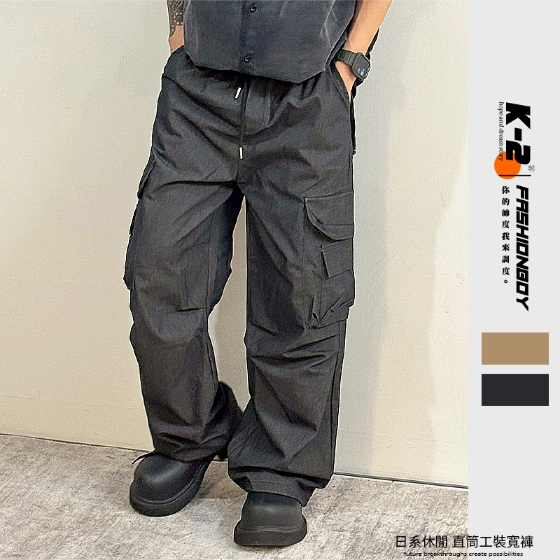 【K-2】美式休閒 傘兵皺褶 工裝寬褲 束口褲 山系 大口袋 直筒寬褲 休閒長褲 造型長褲 壓褶 長褲【K3516】卡其色,M|卡其色,L|卡其色,XL|黑色,M|黑色,L|黑色,XLCargoK-2 Fashionboy