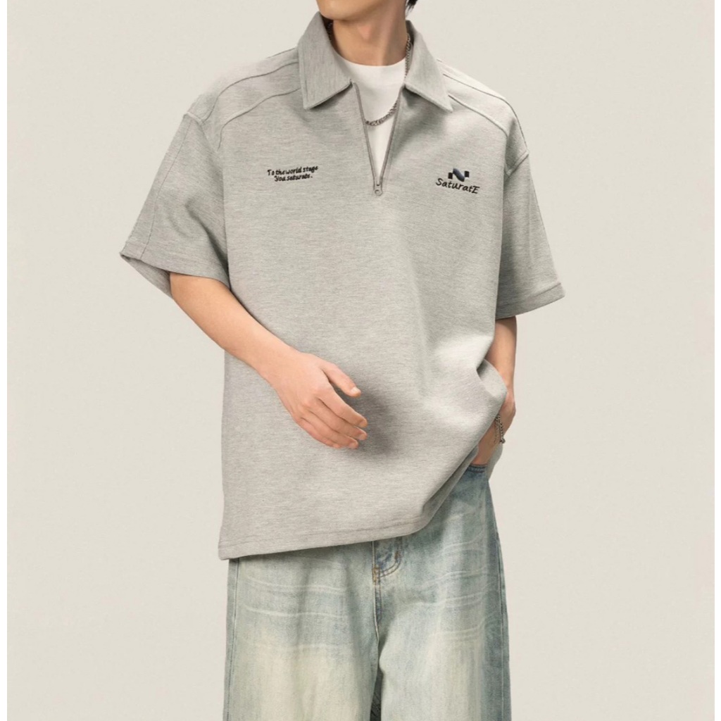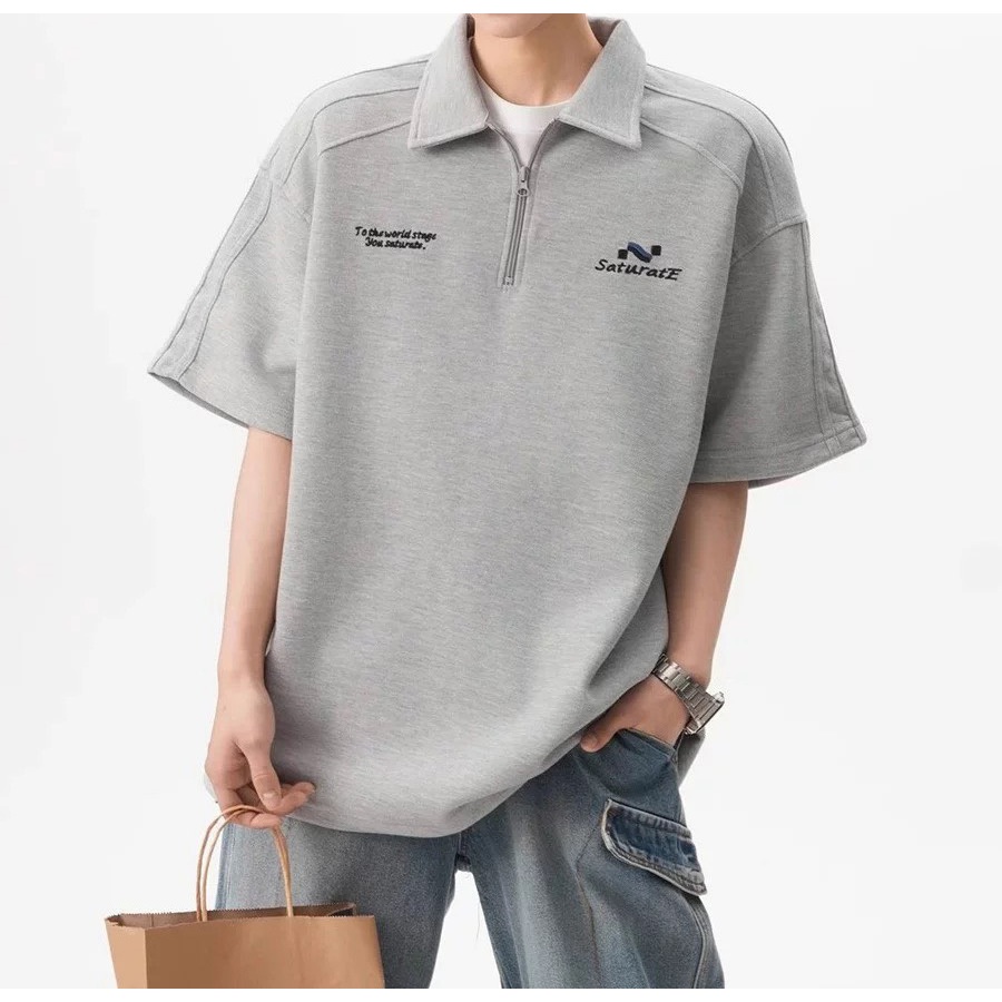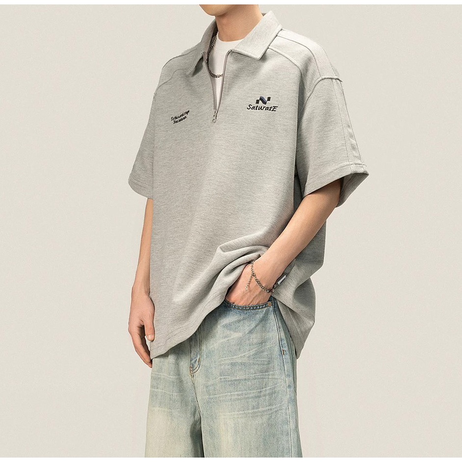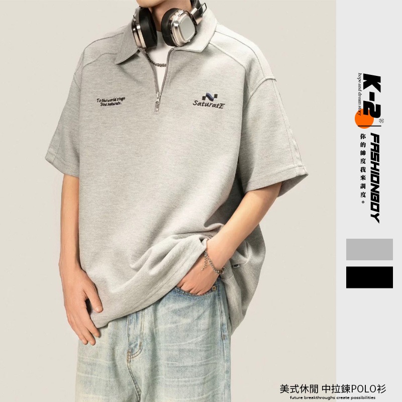 【K-2】美式休閒 草寫英文 中拉鍊 POLO衫 短袖POLP衫 特殊車線 潮流短T 短袖 上衣 Y2K【JH312】灰色,L|灰色,XL|灰色,XXL|灰色,3XL|黑色,L|黑色,XL|黑色,XXL|黑色,3XLPolo ShirtsK-2 Fashionboy