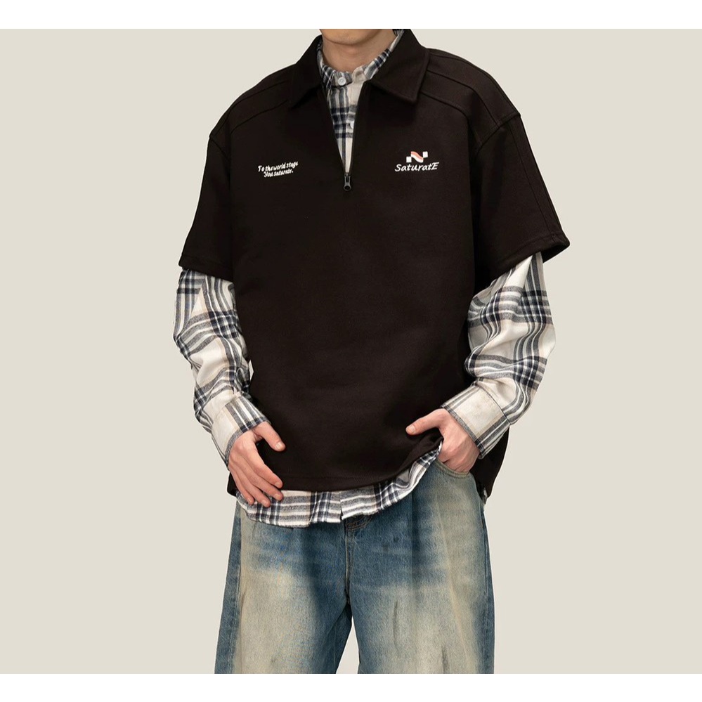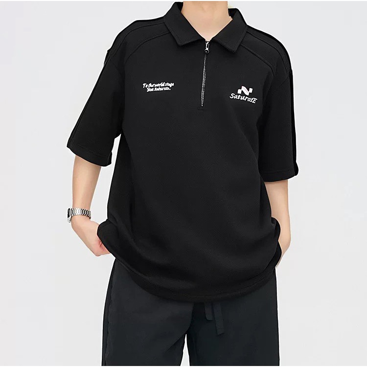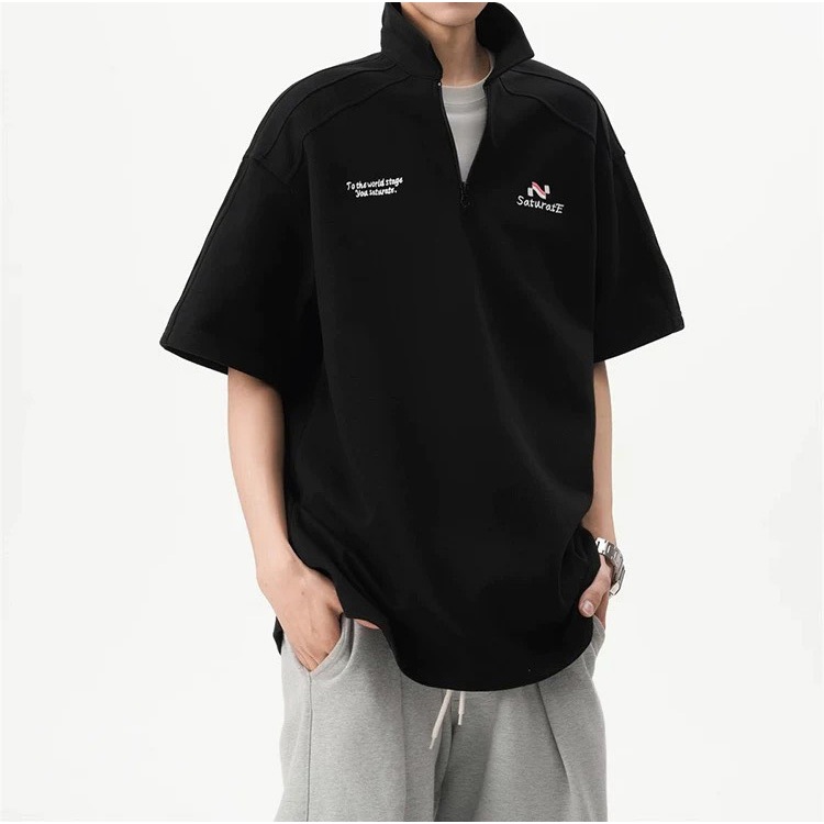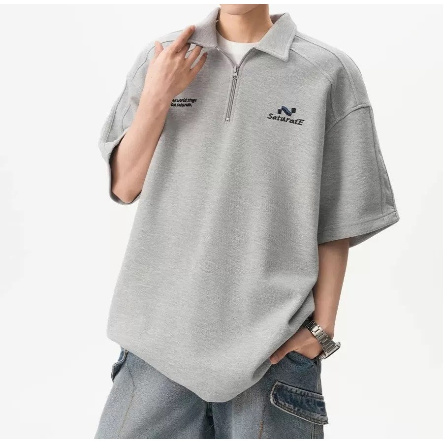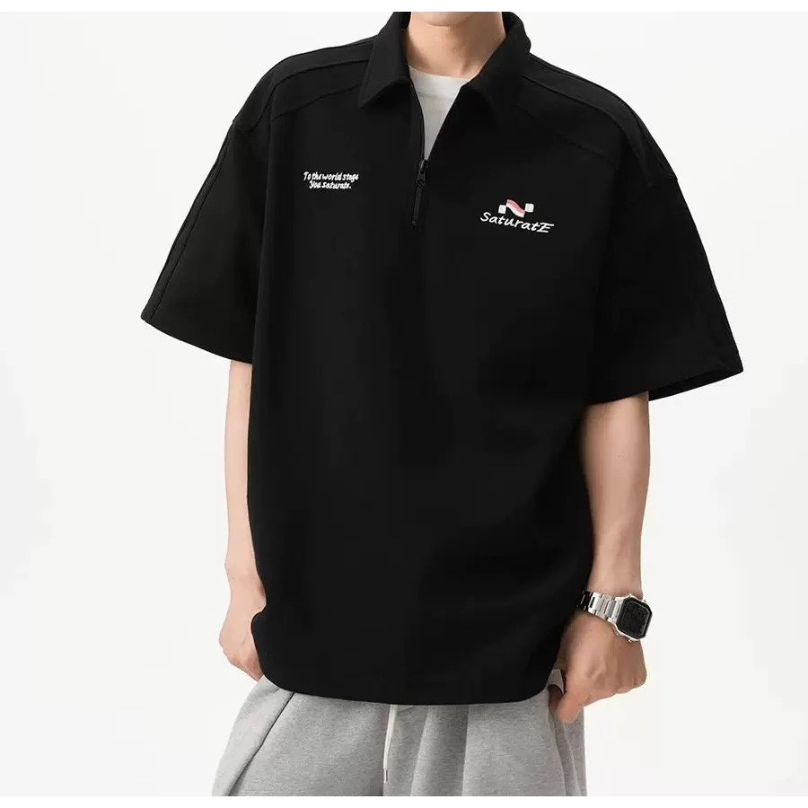 【K-2】美式休閒 草寫英文 中拉鍊 POLO衫 短袖POLP衫 特殊車線 潮流短T 短袖 上衣 Y2K【JH312】灰色,L|灰色,XL|灰色,XXL|灰色,3XL|黑色,L|黑色,XL|黑色,XXL|黑色,3XLPolo ShirtsK-2 Fashionboy