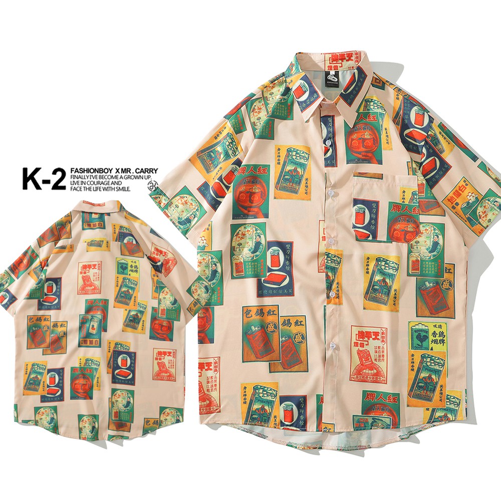 【K-2】復古 港式 古惑仔 街頭 古著 滿版港風 花襯衫 短袖襯衫 潮流 穿搭 寬鬆 男女不拘【B2063】2XL,綠色|XL,杏色|XL,綠色|L,杏色|L,綠色|2XL,杏色|M,杏色|M,綠色ShirtsK-2 Fashionboy