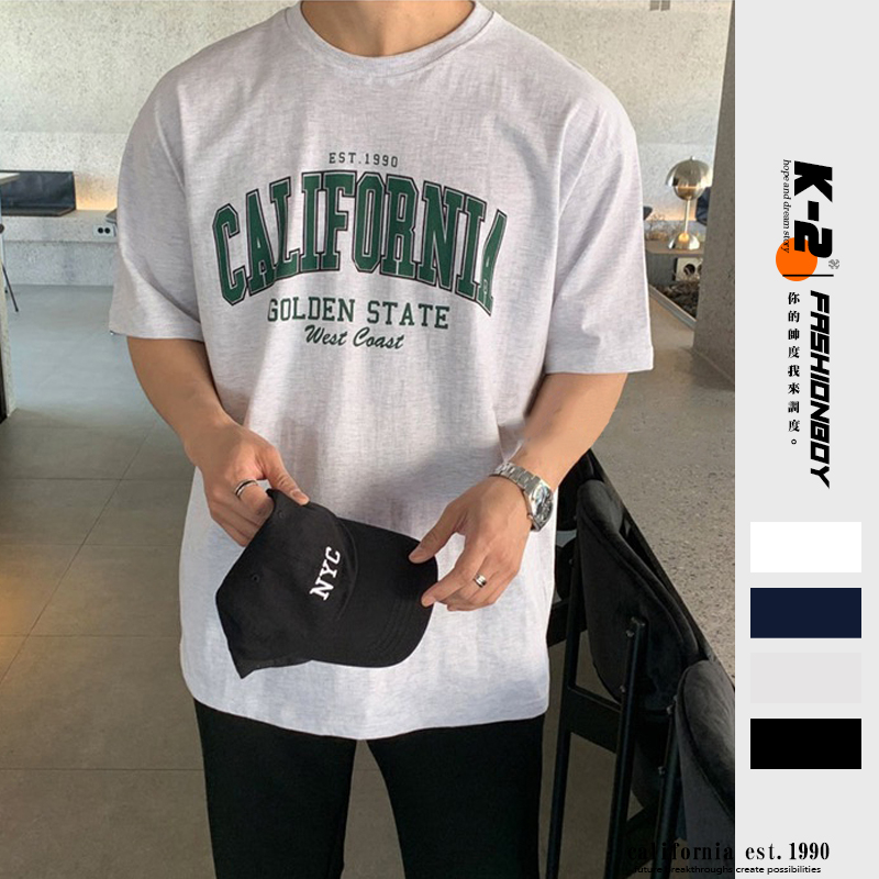 【K-2】est 1990 CALIFORNIA GOLDEN STATE 加州 落肩 寬鬆 短T 上衣【K2612】白色,L|黑色,M|米灰色,M|米灰色,L|深藍色,L|白色,M|黑色,L|深藍色,MT-ShirtsK-2 Fashionboy