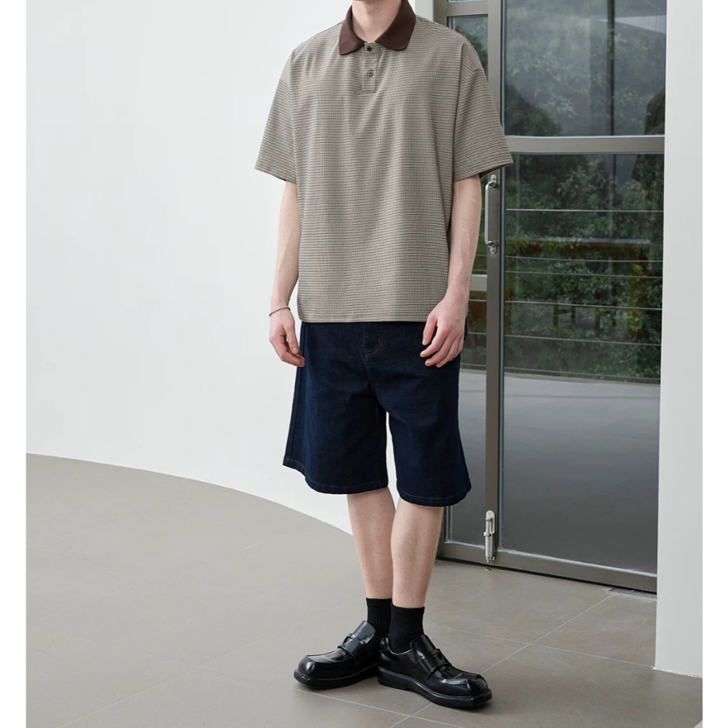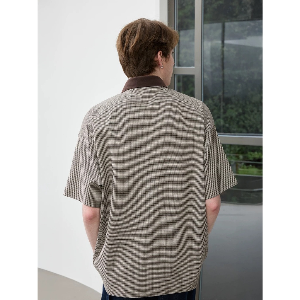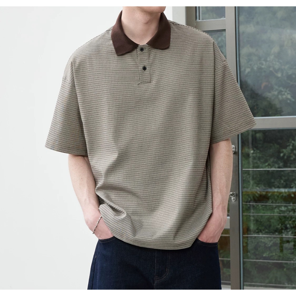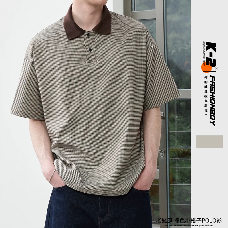 【K-2】休閒老錢風 撞色領口 小格子 POLO衫 短袖POLO杉 復古 短T 短袖 上衣 老錢風 K2【JT606】M|LPolo ShirtsK-2 Fashionboy
