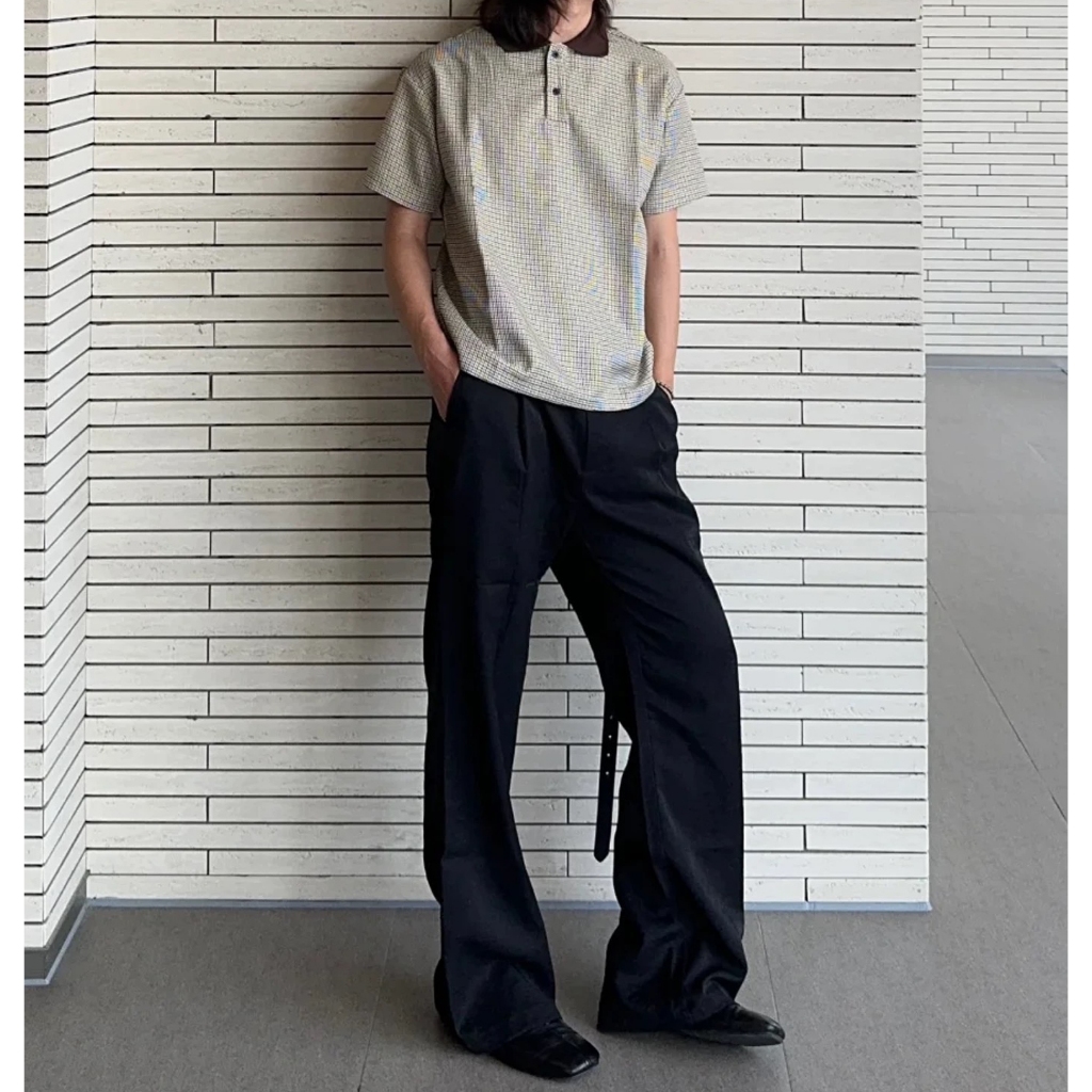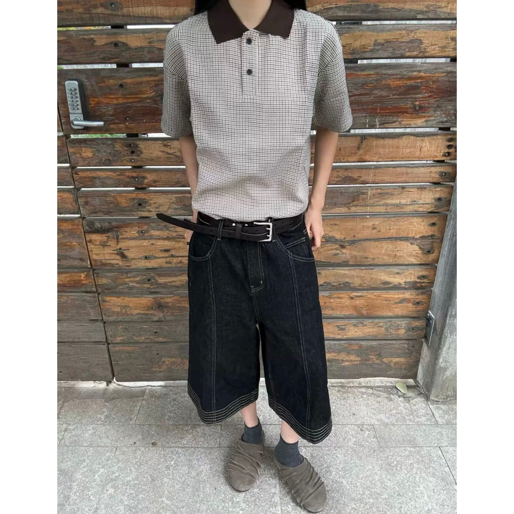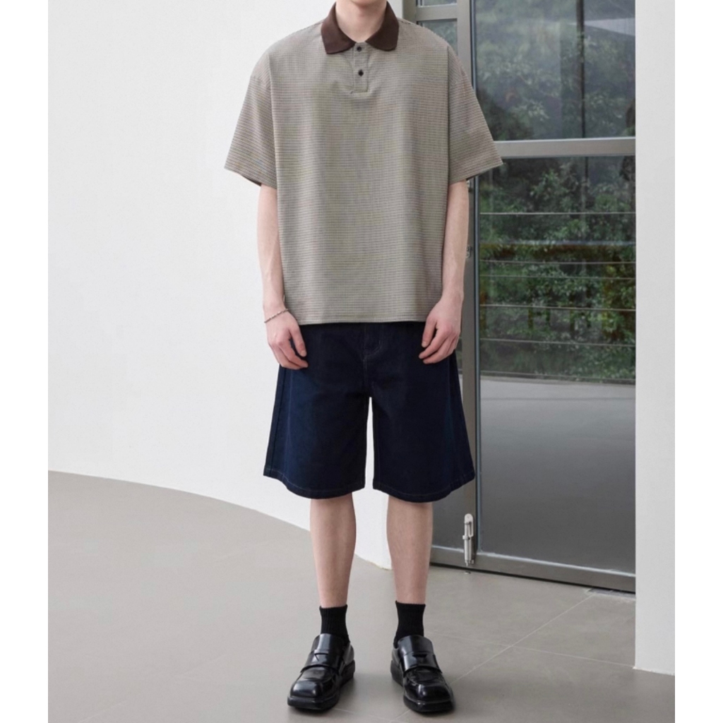 【K-2】休閒老錢風 撞色領口 小格子 POLO衫 短袖POLO杉 復古 短T 短袖 上衣 老錢風 K2【JT606】M|LPolo ShirtsK-2 Fashionboy