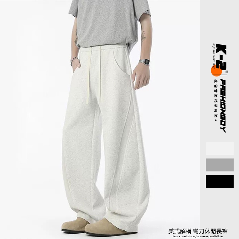 【K-2】美式休閒 解構線條 彎刀褲 運動褲 直筒長褲 休閒棉褲 彎刀長褲 復古長褲 Y2K褲子 直筒褲【JA771】白灰色,M|白灰色,L|白灰色,XL|白灰色,XXL|灰色,M|灰色,L|灰色,XL|灰色,XXL|黑色,M|黑色,L|黑色,XL|黑色,XXLPantsK-2 Fashionboy
