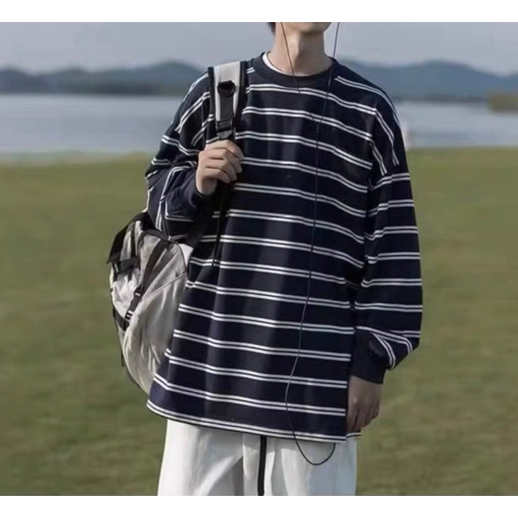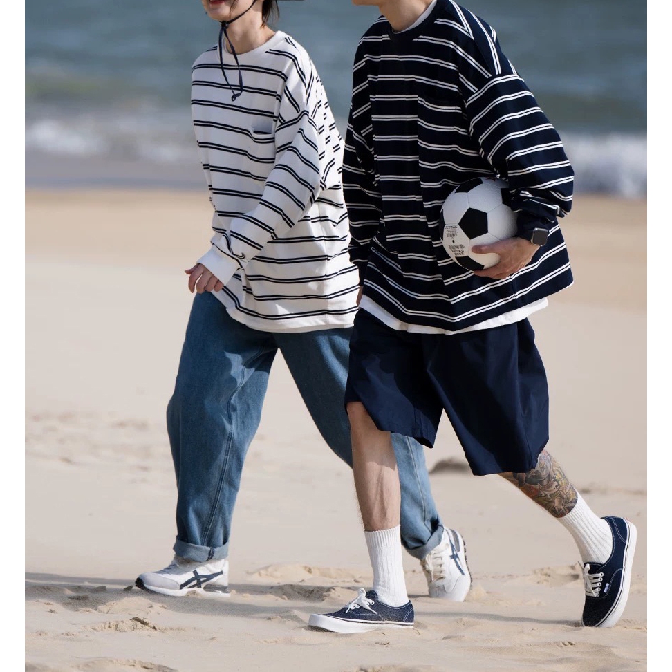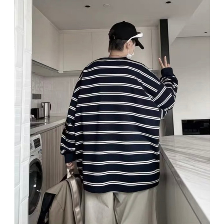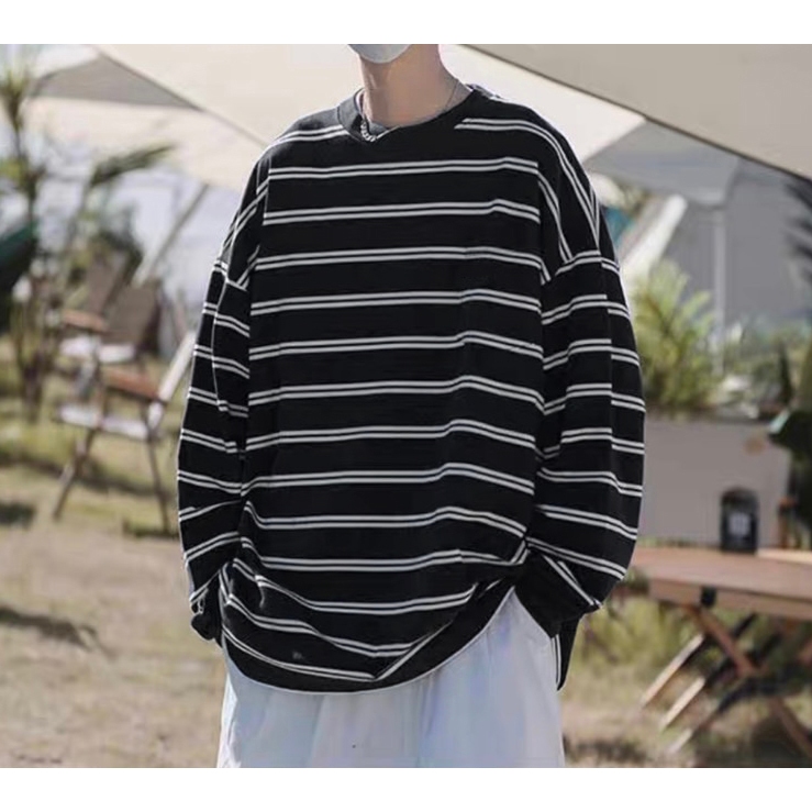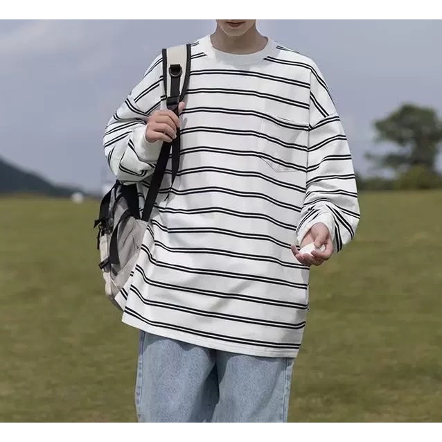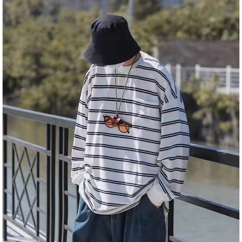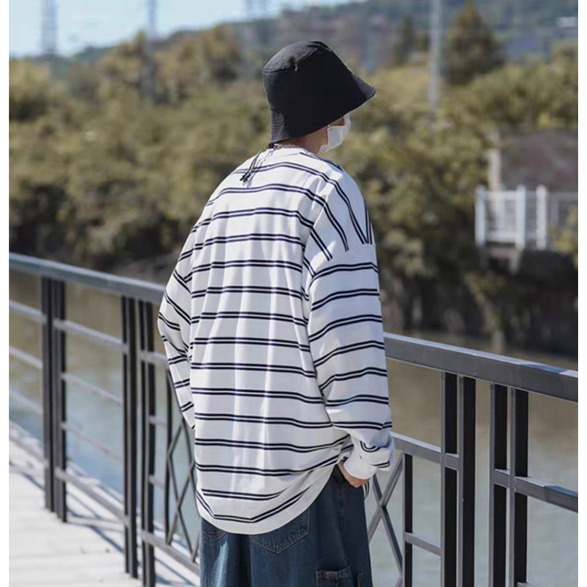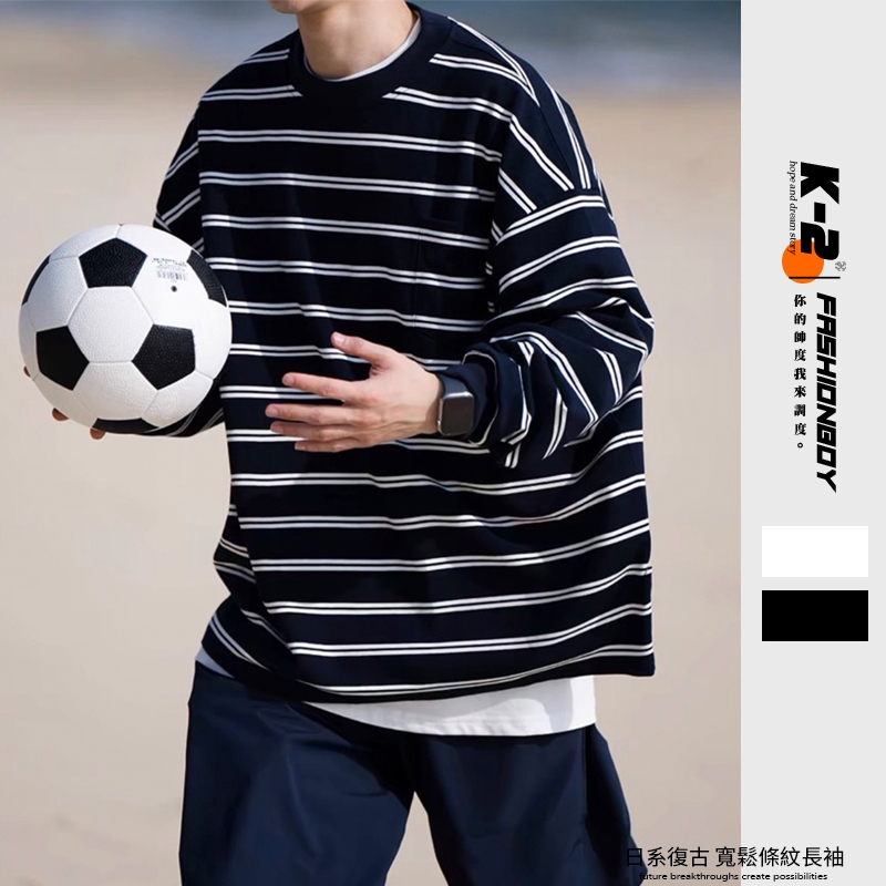 【K-2】CITYBOY 日系復古 寬鬆條紋長T 口袋T 重疊刺繡 落肩 寬鬆 長袖 條紋T K2 Y2K【KN03】白色,M|白色,L|黑色,M|黑色,LT-ShirtsK-2 Fashionboy