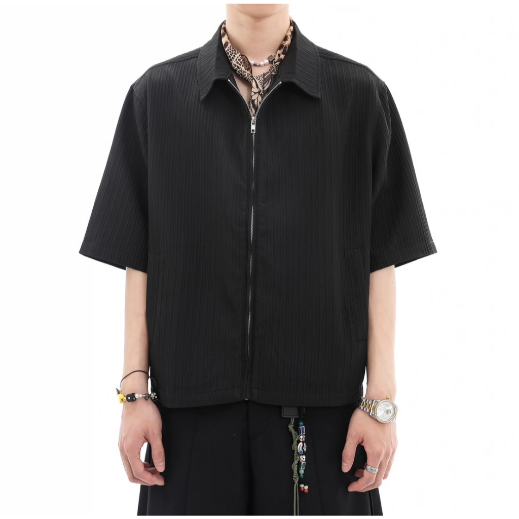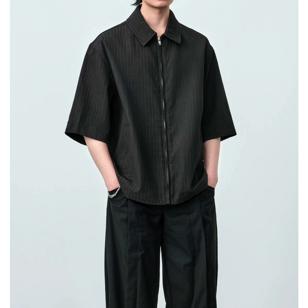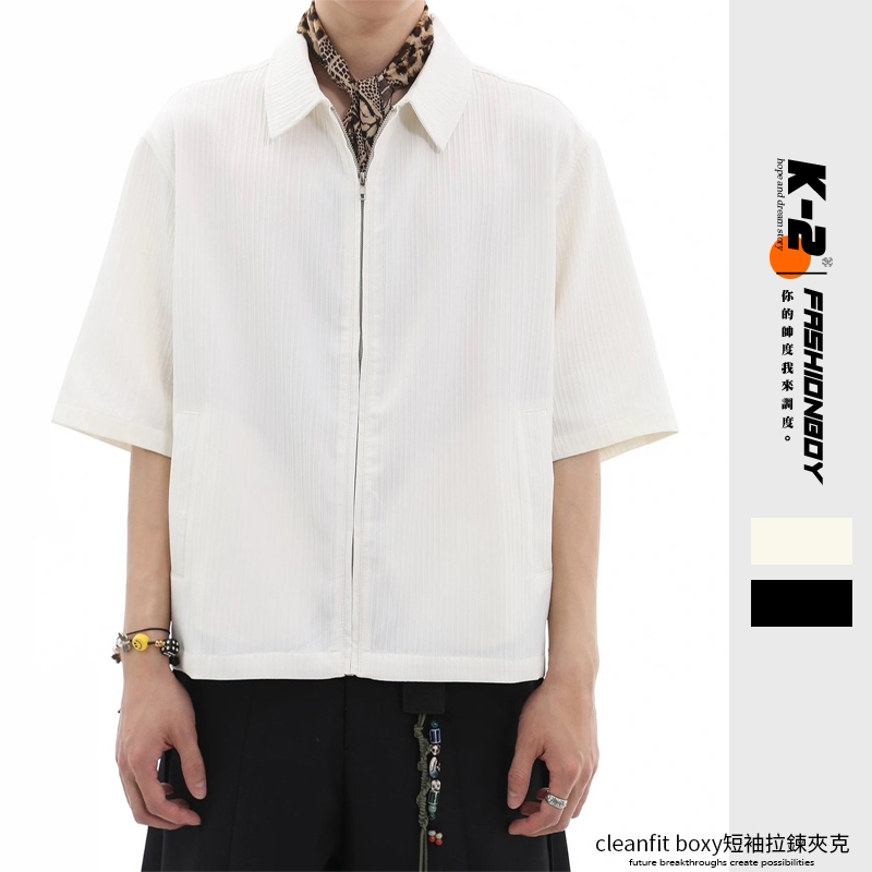 【K-2】CLEANFIT BOXY 拉鍊 素面 坑條 短袖夾克 拉鍊襯衫 穿搭 寬鬆 韓國歐巴 潮流【JHC2330】黑,M|黑,L|黑,XL|黑,XXL|白,M|白,L|白,XL|白,XXLPantsK-2 Fashionboy