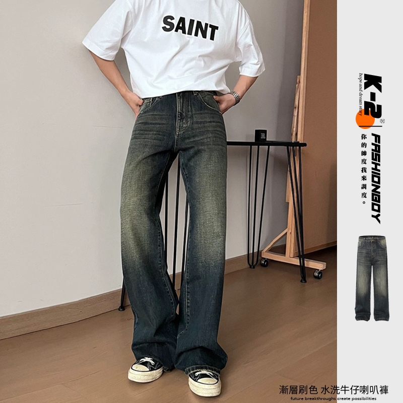【K-2】單一色 漸層刷色 水洗 牛仔微拉喇 牛仔長褲 牛仔褲 長褲 喇叭褲 穿搭 四季 百搭 情侶【JK2447】S|M|L|XL|XXLPantsK-2 Fashionboy