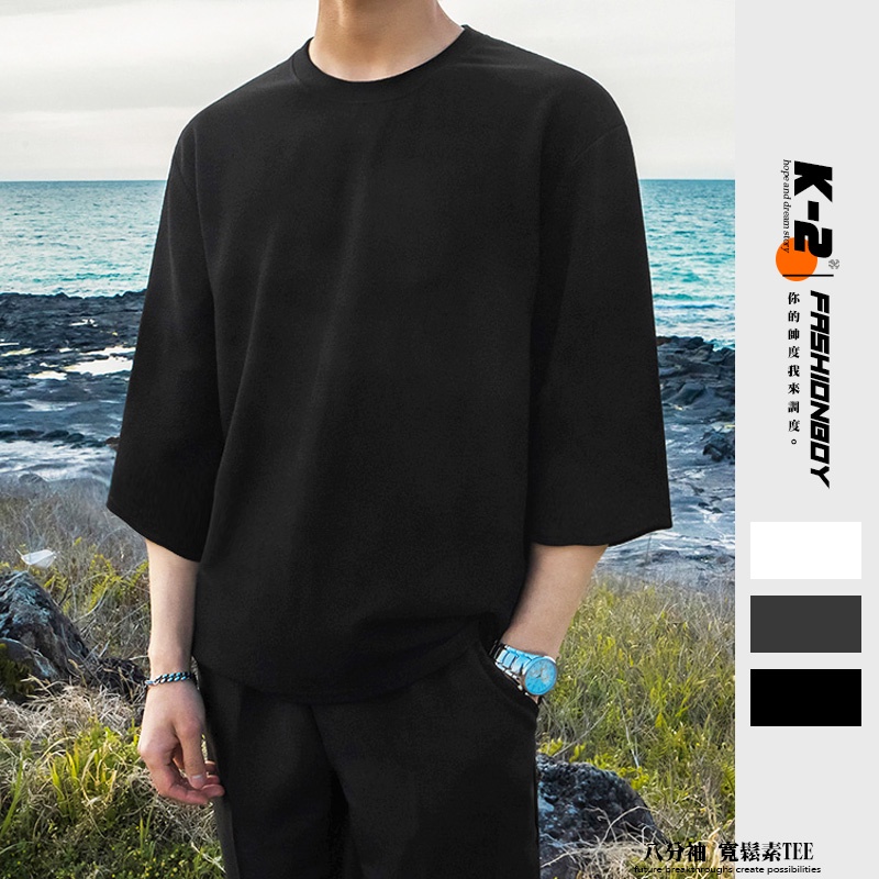【K-2】韓國 七分袖素T 寬鬆 八分袖 九分袖 上衣 韓國上衣 情侶 落肩 素T K2 素踢 VIBE【K555】白色,M|白色,L|鐵灰色,M|鐵灰色,L|黑色,M|黑色,LT-ShirtsK-2 Fashionboy