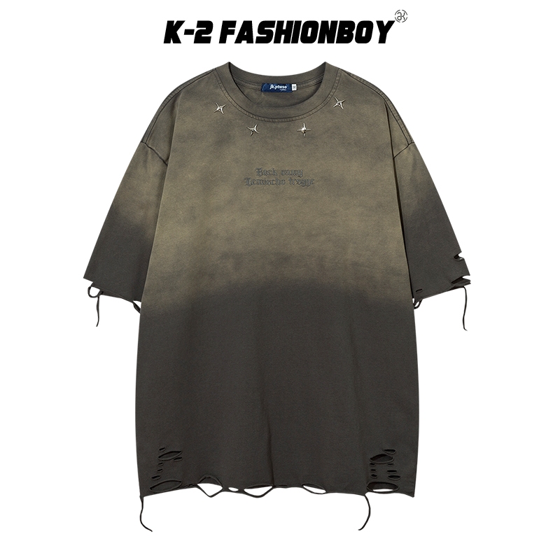 【K-2】刺繡字母 立體十字星 水洗漸層 下擺割破 抽鬚 短袖上衣 水洗短T 個性穿搭 街頭【H7881】黑,M|黑,L|黑,XL|黑,XXL|卡,M|卡,L|卡,XL|卡,XXLT-ShirtsK-2 Fashionboy