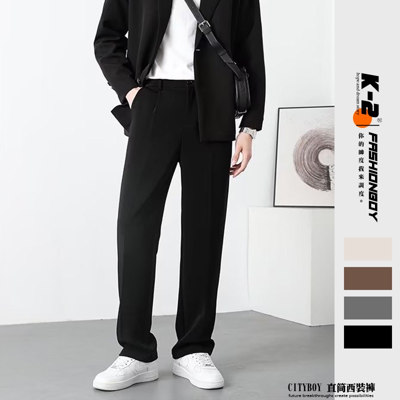 【K-2】CITYBOY 直筒西裝褲 四季百搭 西褲 垂墜感 鬆緊腰圍 直筒褲 長褲 褲子 Y2K 情侶 西裝褲 K2