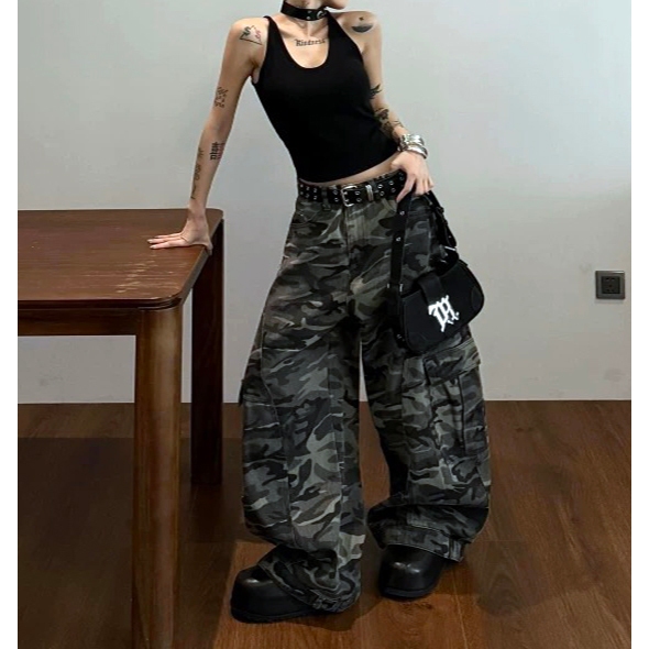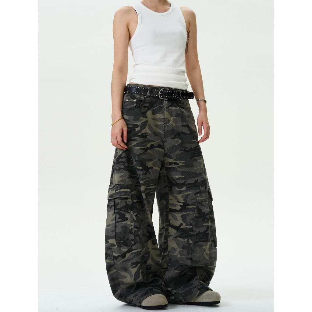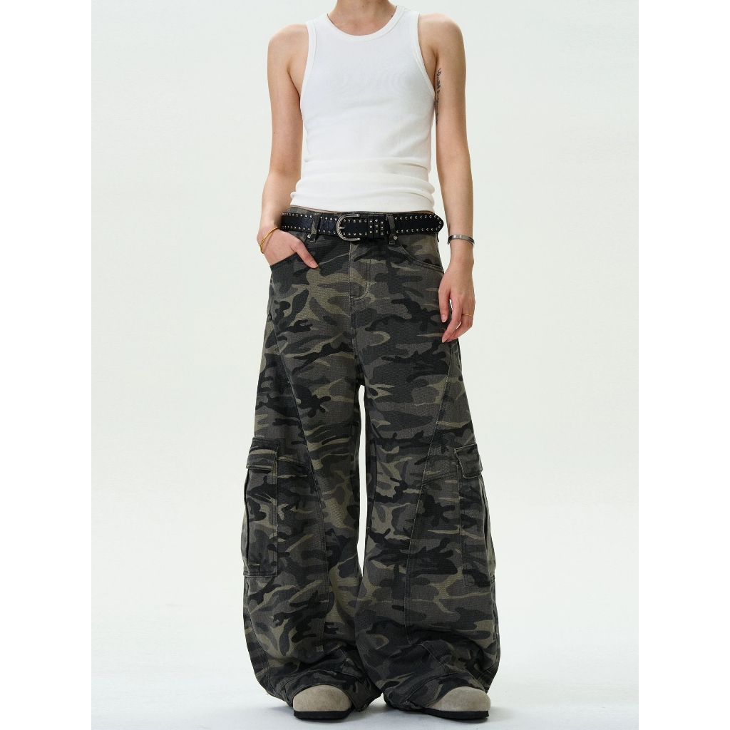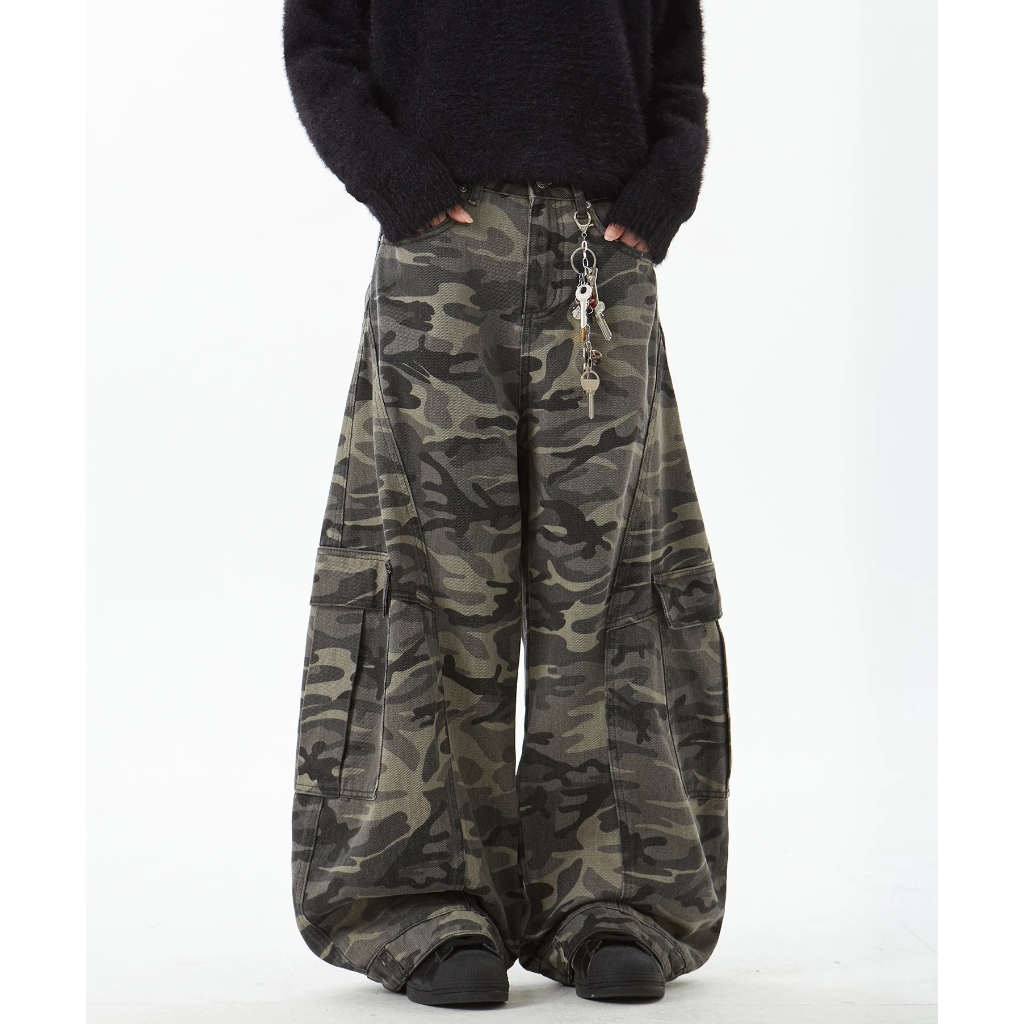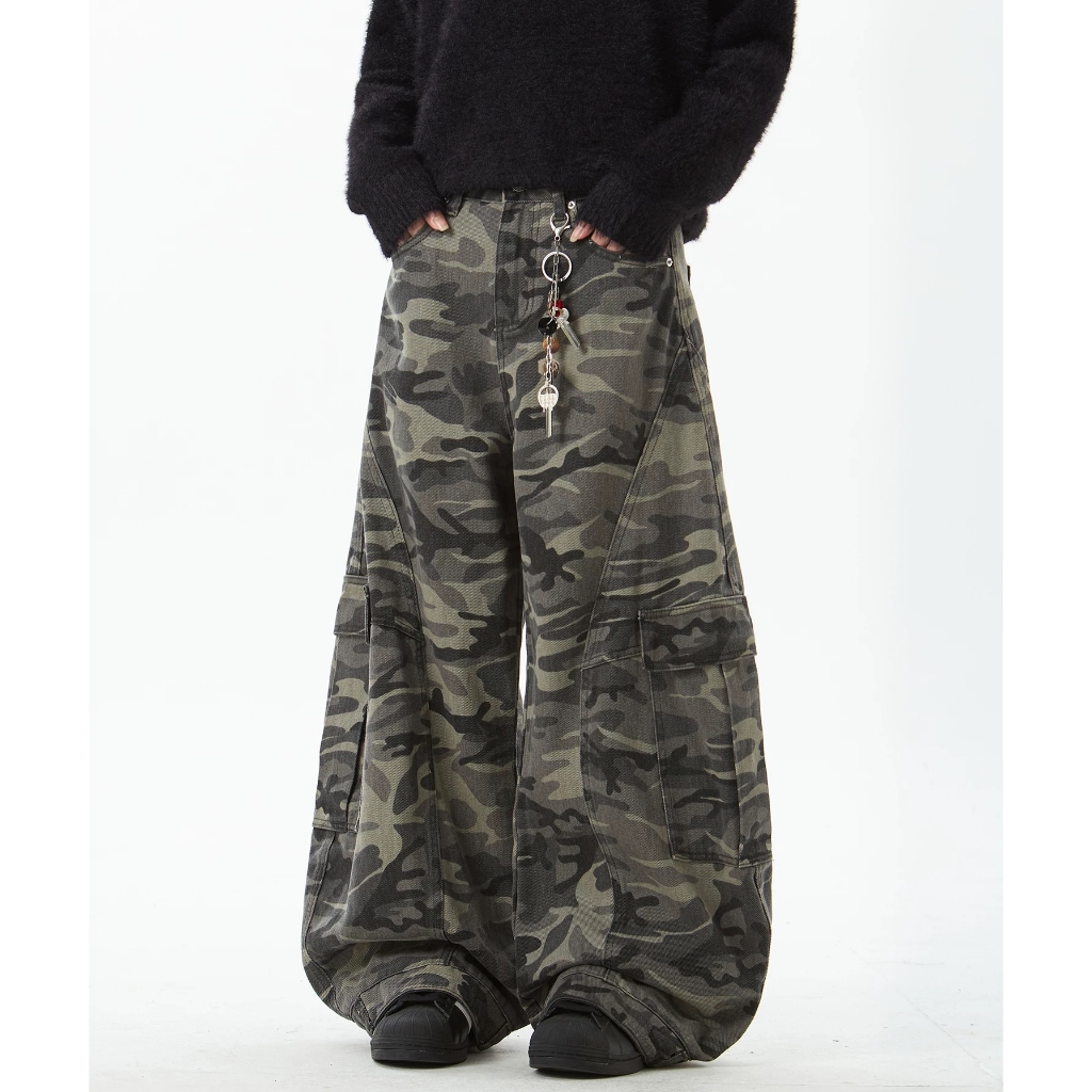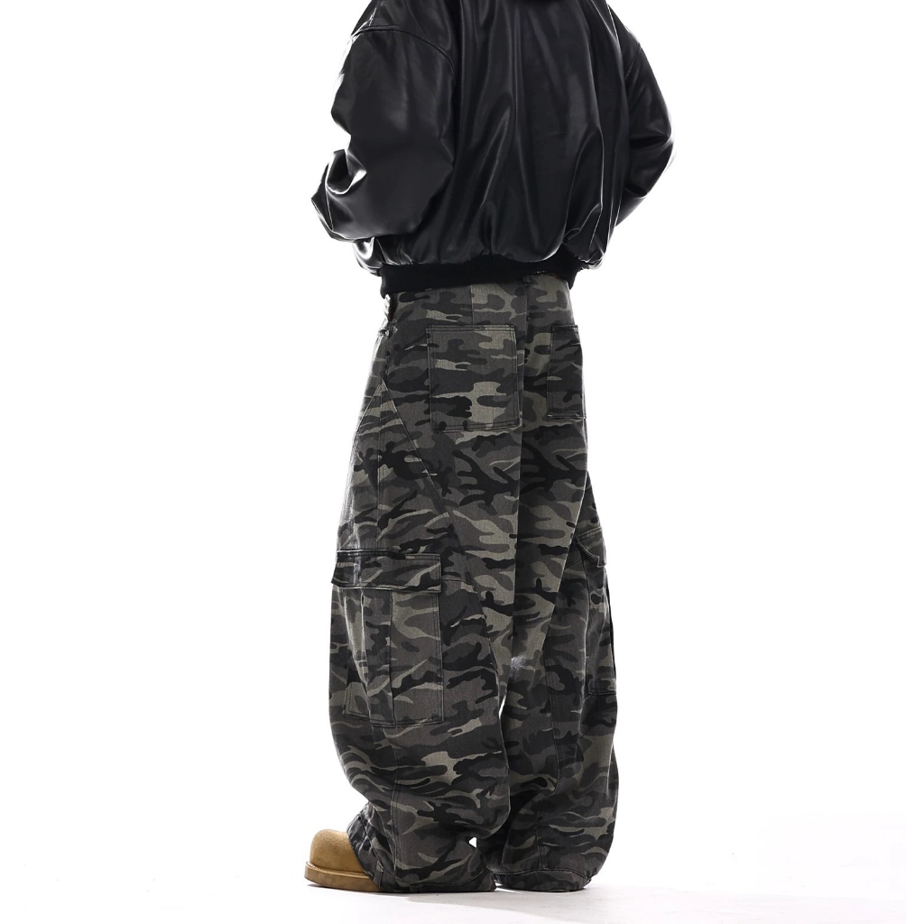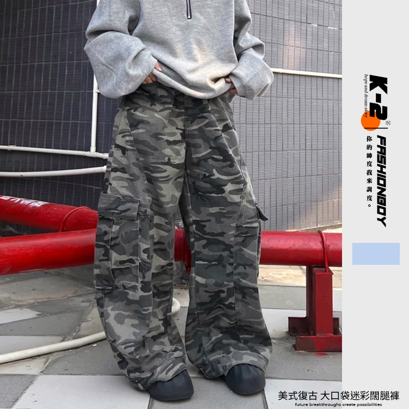 【K-2】美式復古 大口袋 迷彩闊腿褲 工作褲 寬褲 迷彩褲 工裝長褲 休閒長褲 闊腿褲 長褲 復古長褲【JN1056】M|L|XL|XXLCargoK-2 Fashionboy