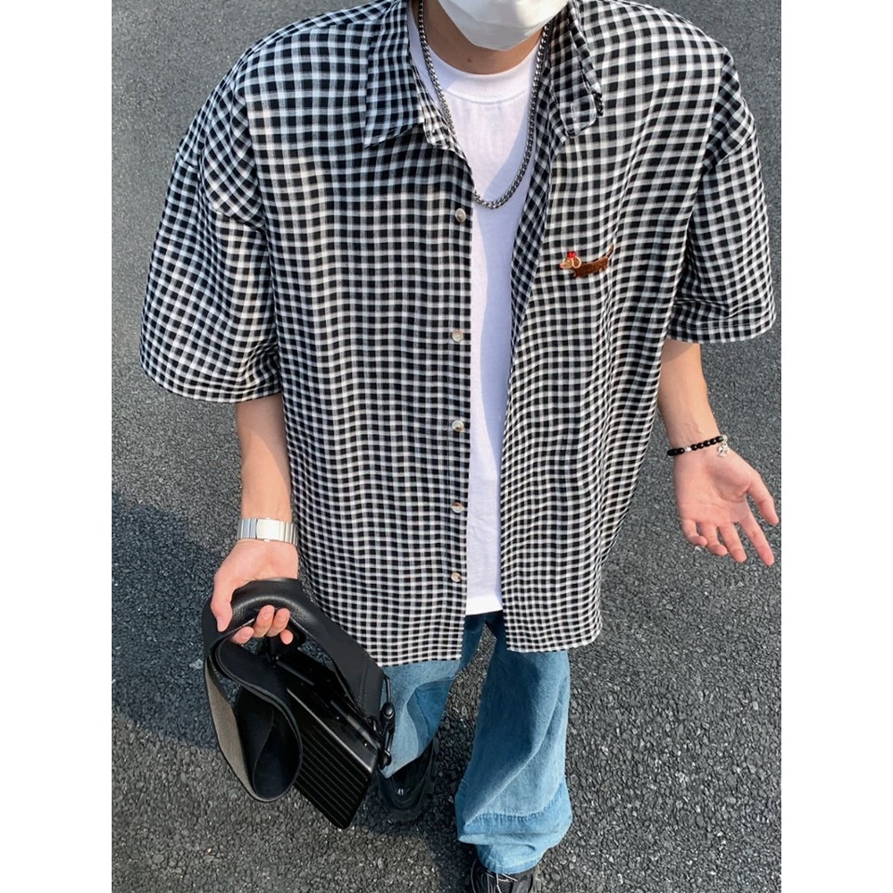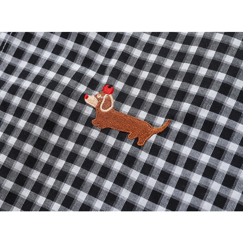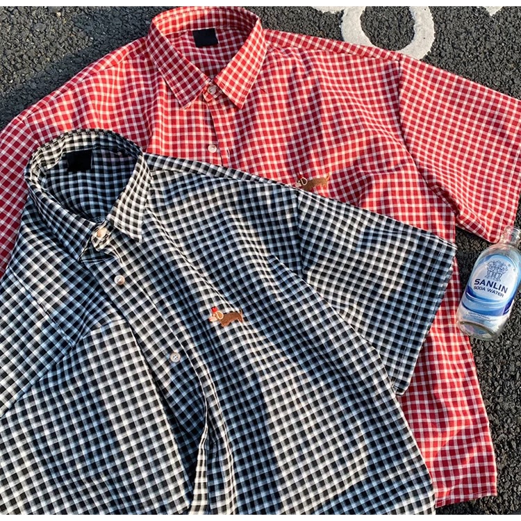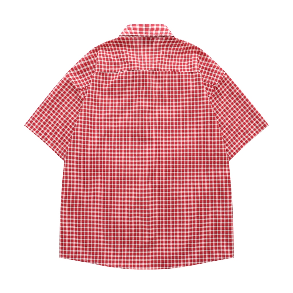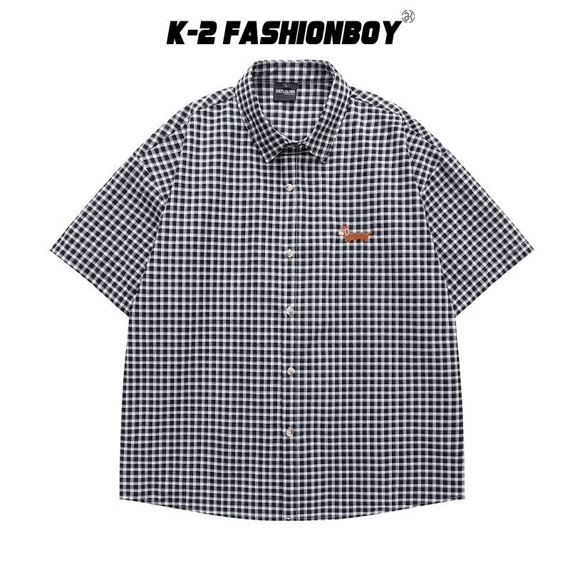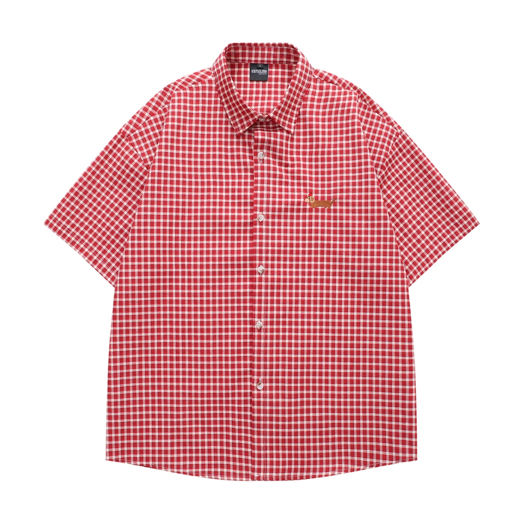 【K-2】臘腸狗刺繡小LOGO 復古小格子襯衫 短袖襯衫 格子襯衫 格紋 襯衫 復古 美式 Y2K K2【J5591】紅色,M|紅色,L|紅色,XL|黑色,M|黑色,L|黑色,XLShirtsK-2 Fashionboy