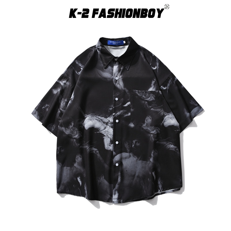 【K-2】羅馬神話 天神 短袖襯衫 個性 寬鬆襯衫 襯衫 男女不拘 個性穿搭 K2【B226】M|L|XLShirtsK-2 Fashionboy