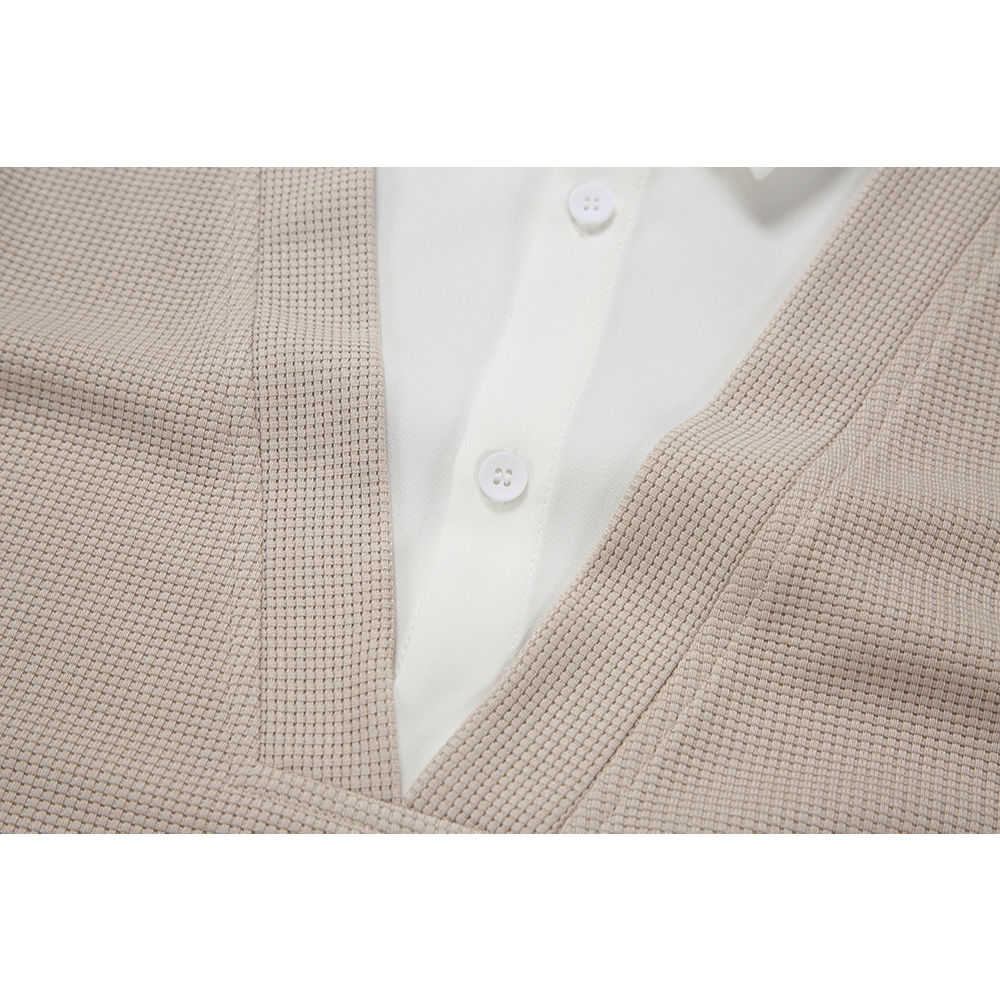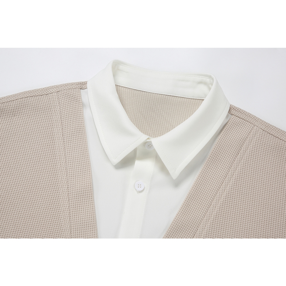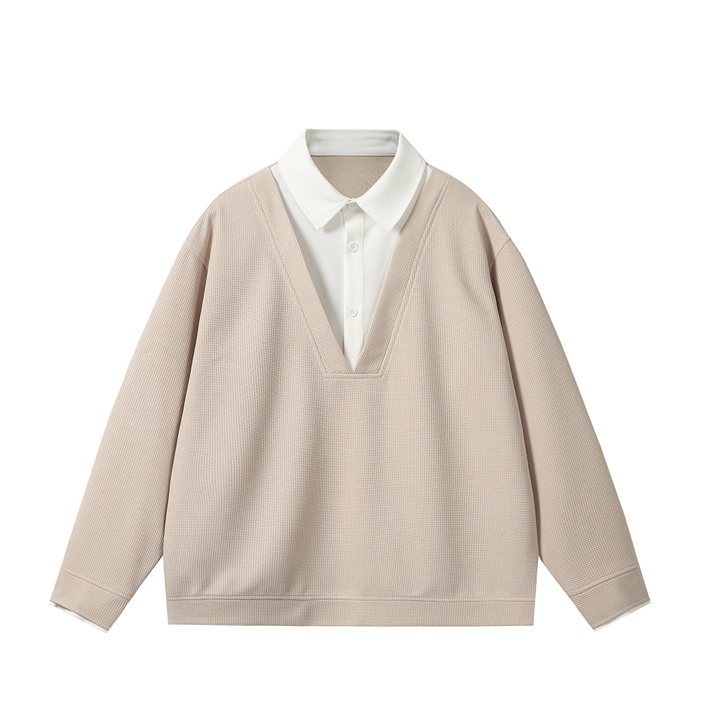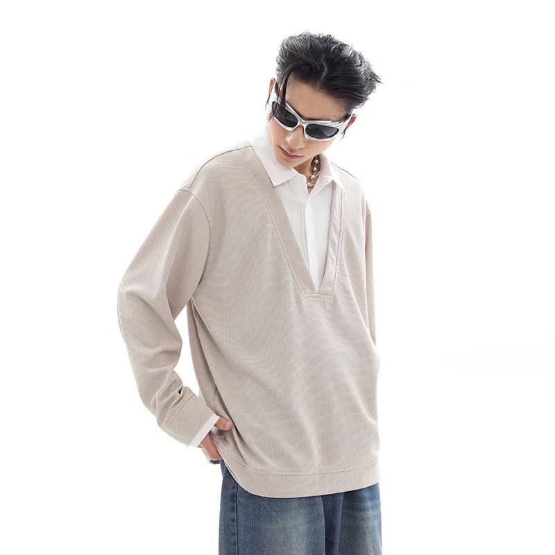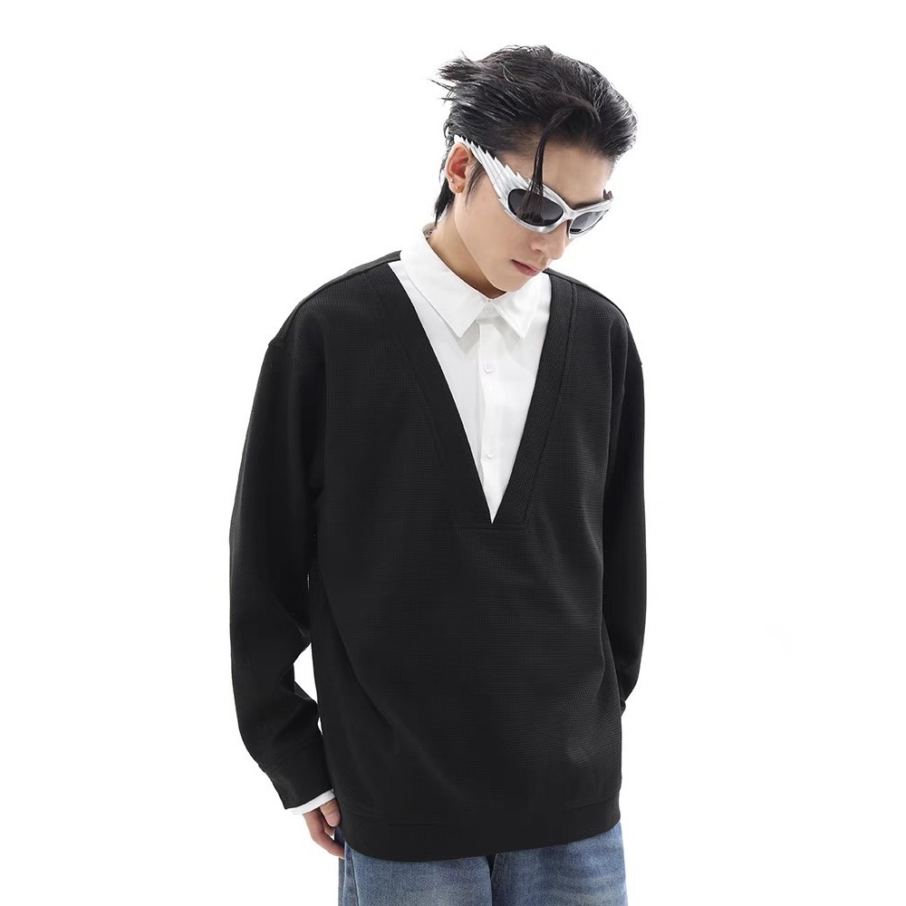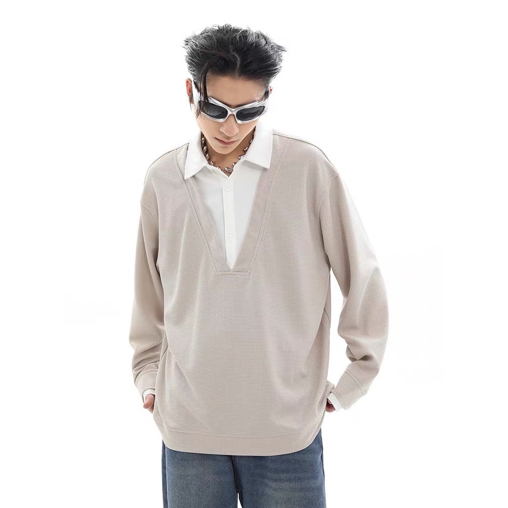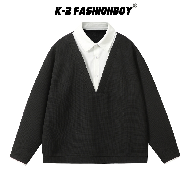 【K-2】學生風 假兩件設計 網狀 立領襯衫+V領長袖上衣 穿搭 素面 簡約 簡單乾淨 穩重【HHW3583】黑,M|黑,L|黑,XL|黑,XXL|杏,M|杏,L|杏,XL|杏,XXLSweatshirtsK-2 Fashionboy