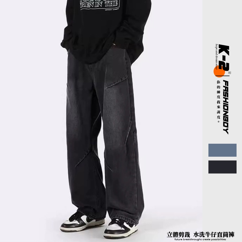 【K-2】暗黑穿搭 立體割痕 水洗刷色 牛仔褲 復古 直筒褲 街頭穿搭 TRAP VIBE 褲子 牛仔【HNZ002】藍色,M|藍色,L|藍色,XL|藍色,XXL|黑色,M|黑色,L|黑色,XL|黑色,XXLK-2 Fashionboy