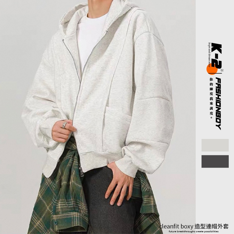 【K-2】cleanfit boxy 短寬版外套 特殊剪裁 造型口袋 解構分割 連帽外套 短版外套 外套【JHJ57】灰白色,M|灰白色,L|深灰色,M|深灰色,LJacketsK-2 Fashionboy