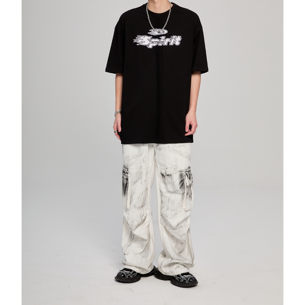 【K-2】ACTHEM SPIRIT 火焰刺繡 特殊車線 落肩 寬鬆短T 短袖上衣 立體貼布 刺繡 火焰【J378】黑色,M|黑色,L|黑色,XL|黑色,XXLT-ShirtsK-2 Fashionboy