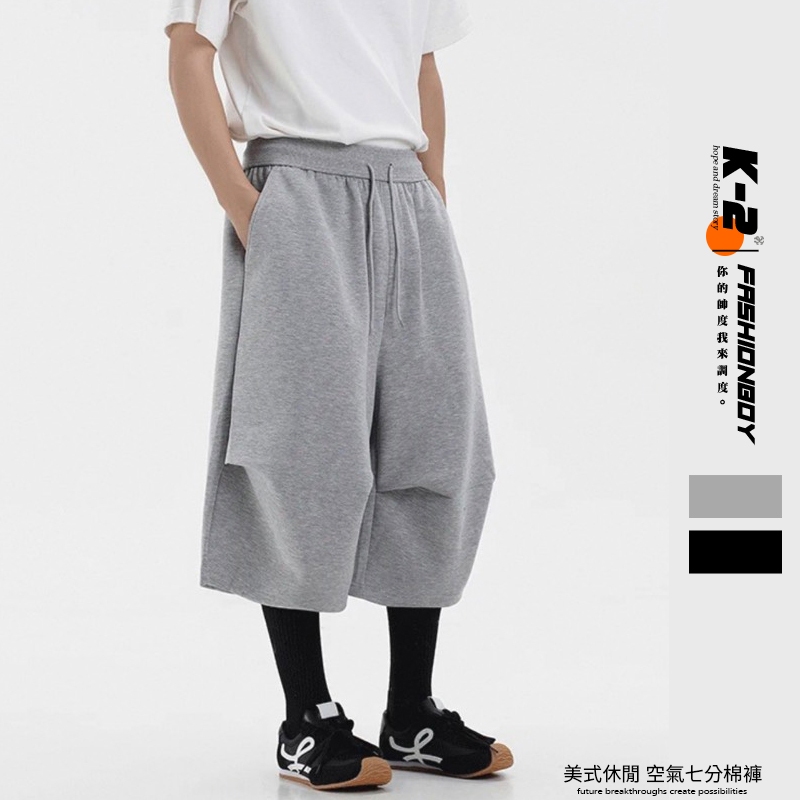 【K-2】cleanfit 美式休閒 空氣感 七分棉褲 七分褲 棉短褲 空氣棉褲 闊腿褲 皺褶 短褲 棉褲【JK382】灰色,M|灰色,L|灰色,XL|灰色,XXL|黑色,M|黑色,L|黑色,XL|黑色,XXLK-2 Fashionboy