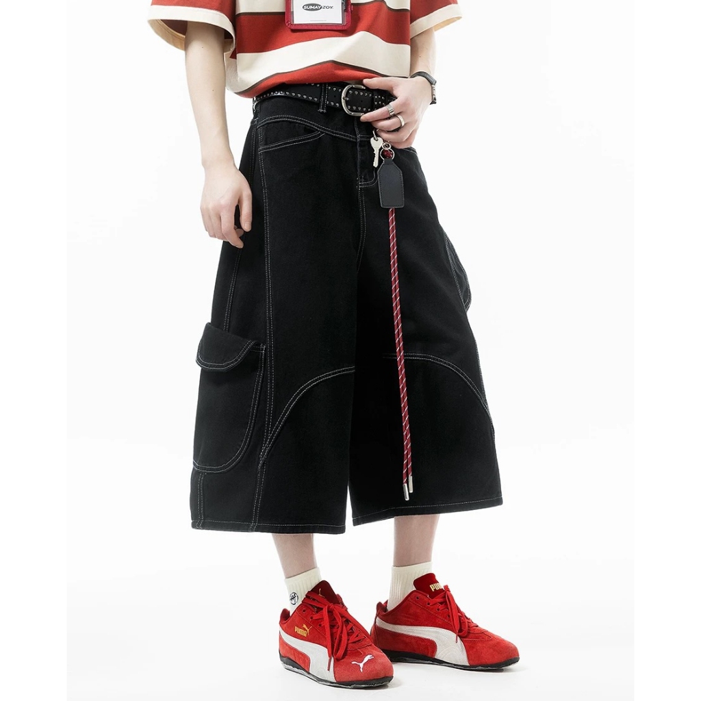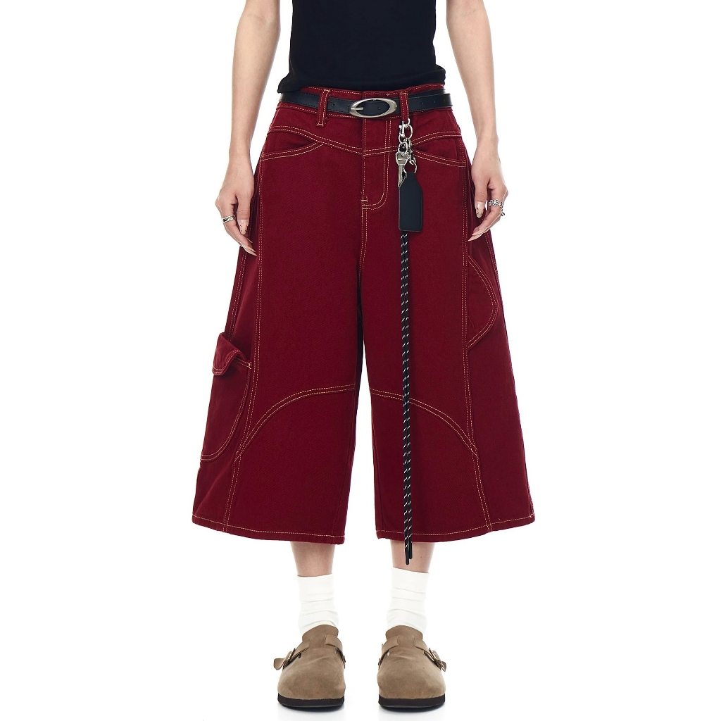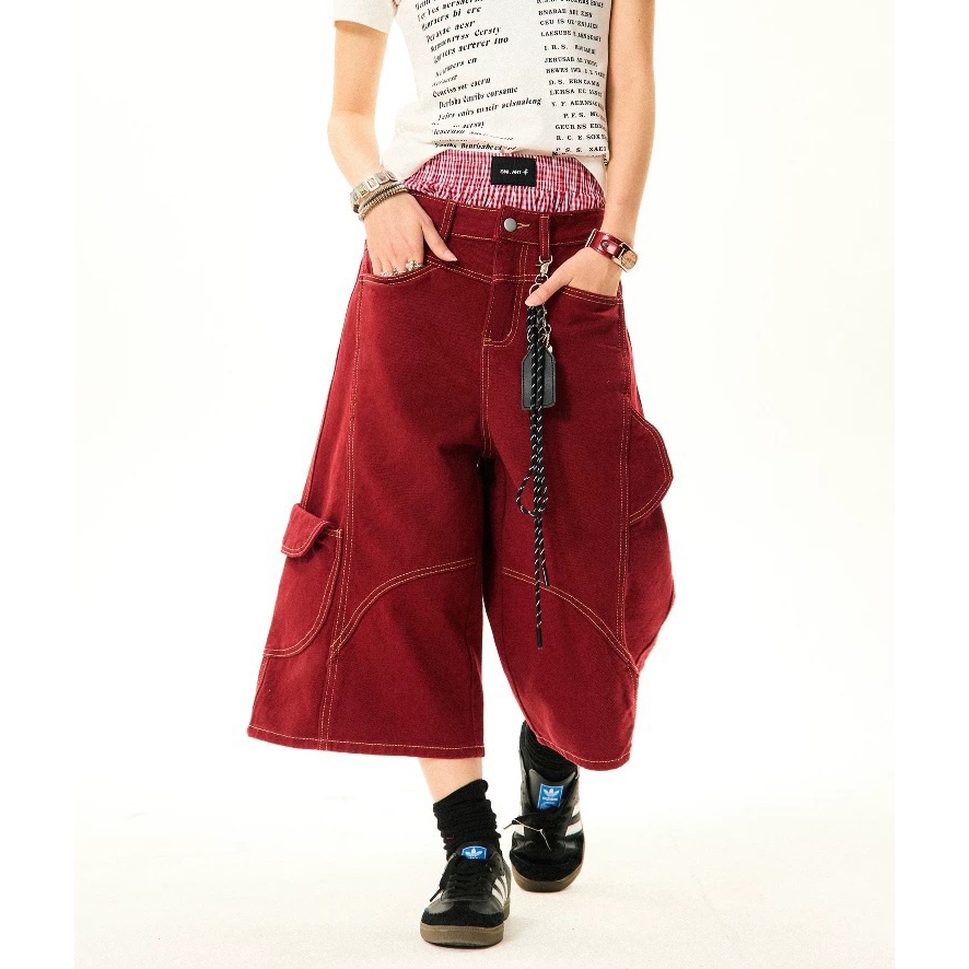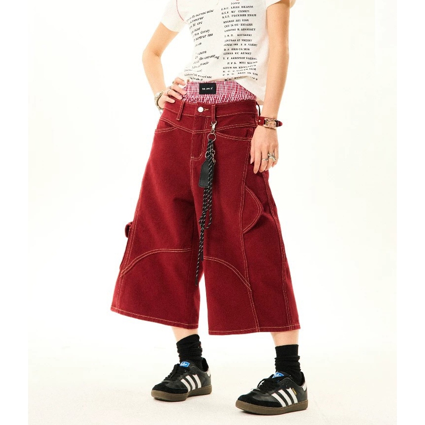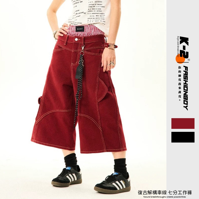 【K-2】復古解構線條 工裝設計 七分短褲 工作褲 闊腿褲 牛仔七分褲 短褲 Y2K 復古短褲 工裝短褲【JB3041】紅色,M|紅色,L|紅色,XL|紅色,XXL|黑色,M|黑色,L|黑色,XL|黑色,XXLK-2 Fashionboy