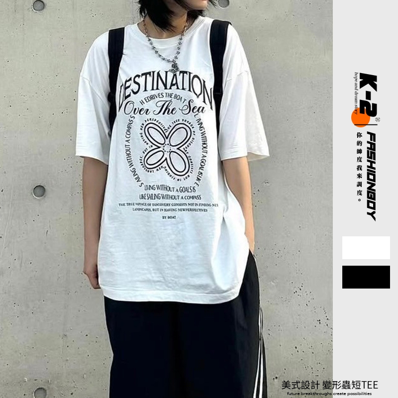 【K-2】DESTINA TION 美式設計 變形蟲 四葉草 標語 落肩 寬鬆短T 短袖 上衣 Y2K【K2703】白色|黑色T-ShirtsK-2 Fashionboy