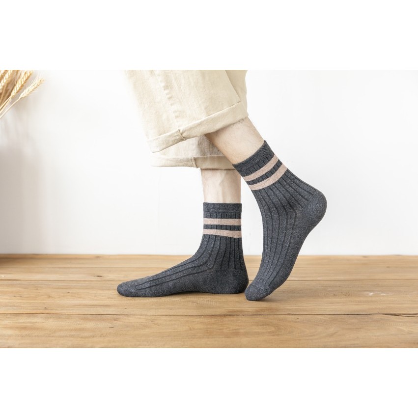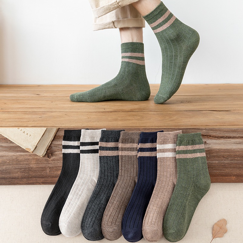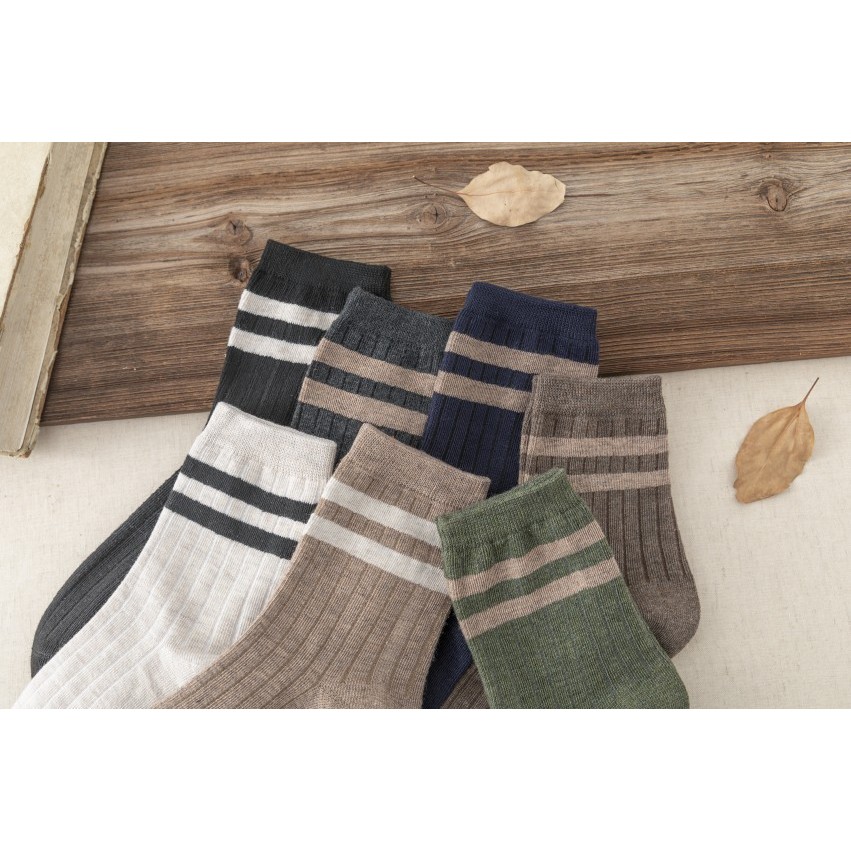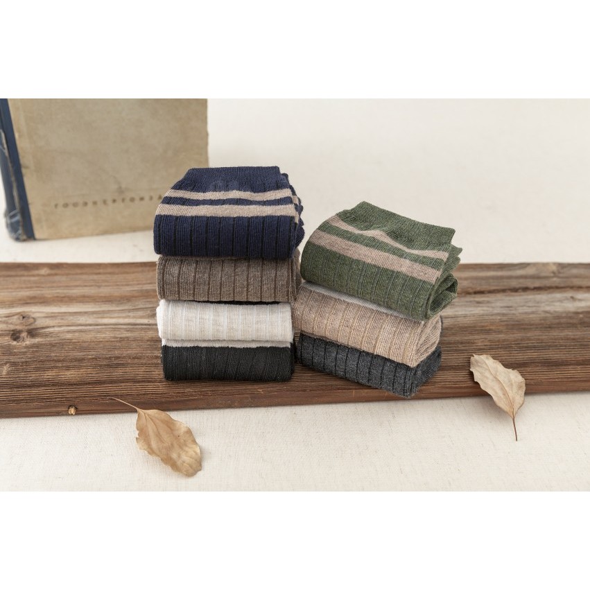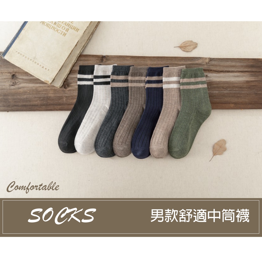 【Pincers 品麝士】文青風中筒襪 中筒襪 男襪 女襪 條紋襪 棉襪軍綠色|咖啡色|米白色|星空黑|金屬灰|丈青藍kyoyeh 國岳