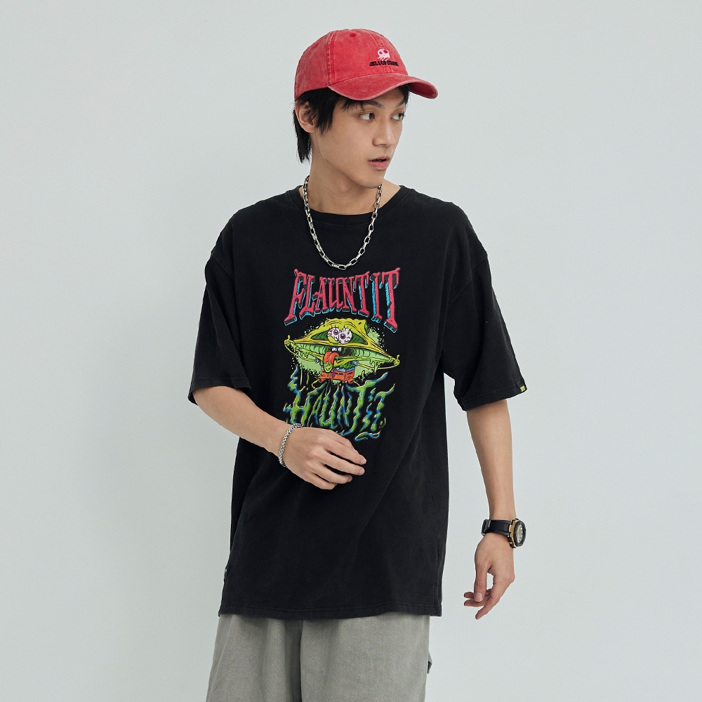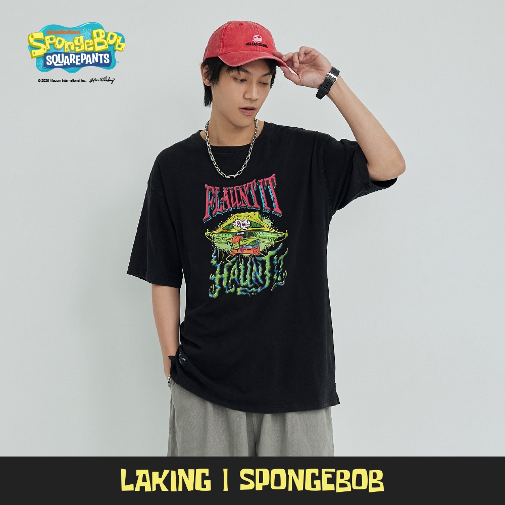 LAKING-海綿寶寶-酷炫幽靈水洗短T黑色,M|黑色,L|黑色,XLT-ShirtsLAKING官方旗艦店