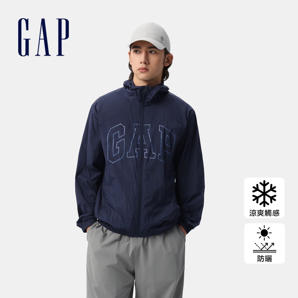 Gap 男裝 Logo印花防曬連帽外套-海軍藍(730837)XXXL|S|M|L|XL|XXLJacketsGap官方旗艦店