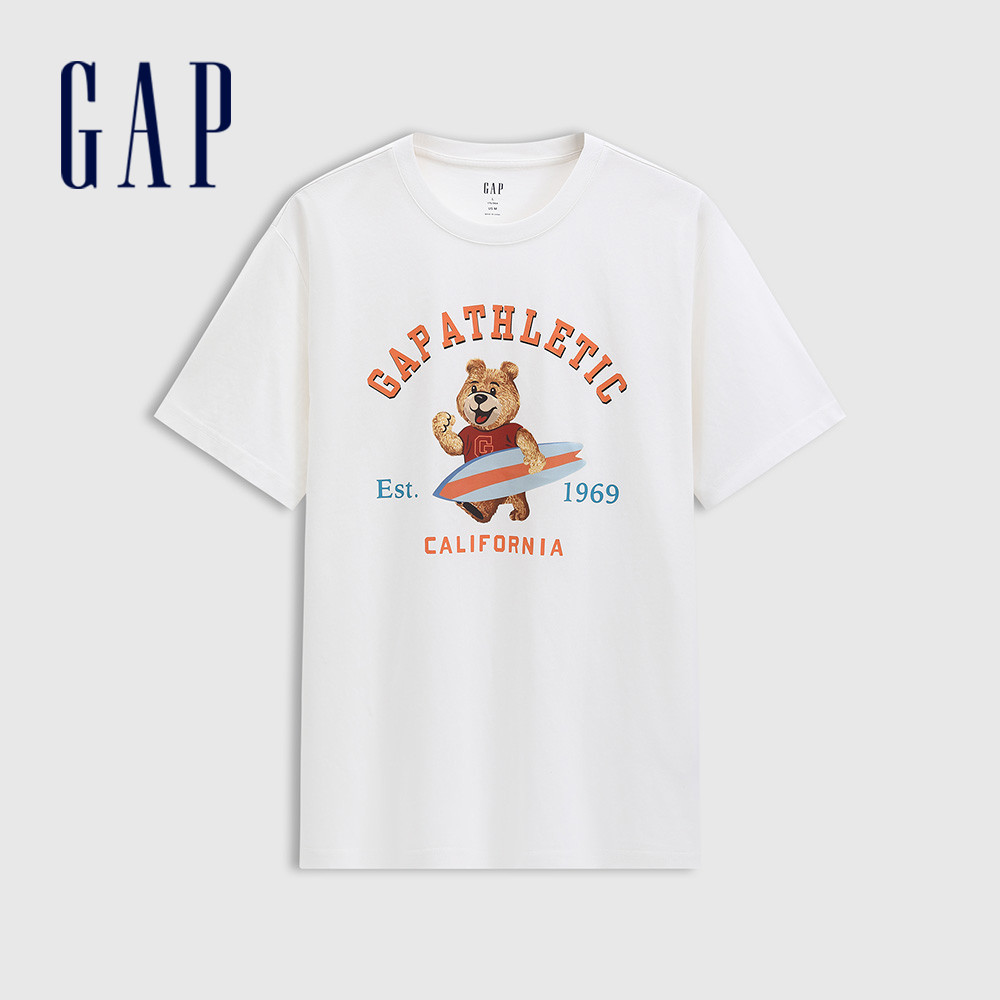 • Gap 男裝 Logo純棉小熊印花圓領短袖T恤-白色(727751)