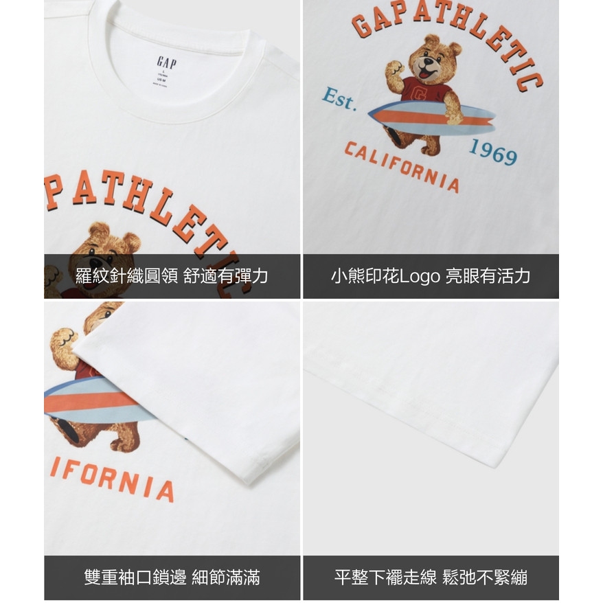 Gap 男裝 Logo純棉小熊印花圓領短袖T恤-白色(727751)XL|XXL|XXXL|XS|S|M|LT-ShirtsGap官方旗艦店