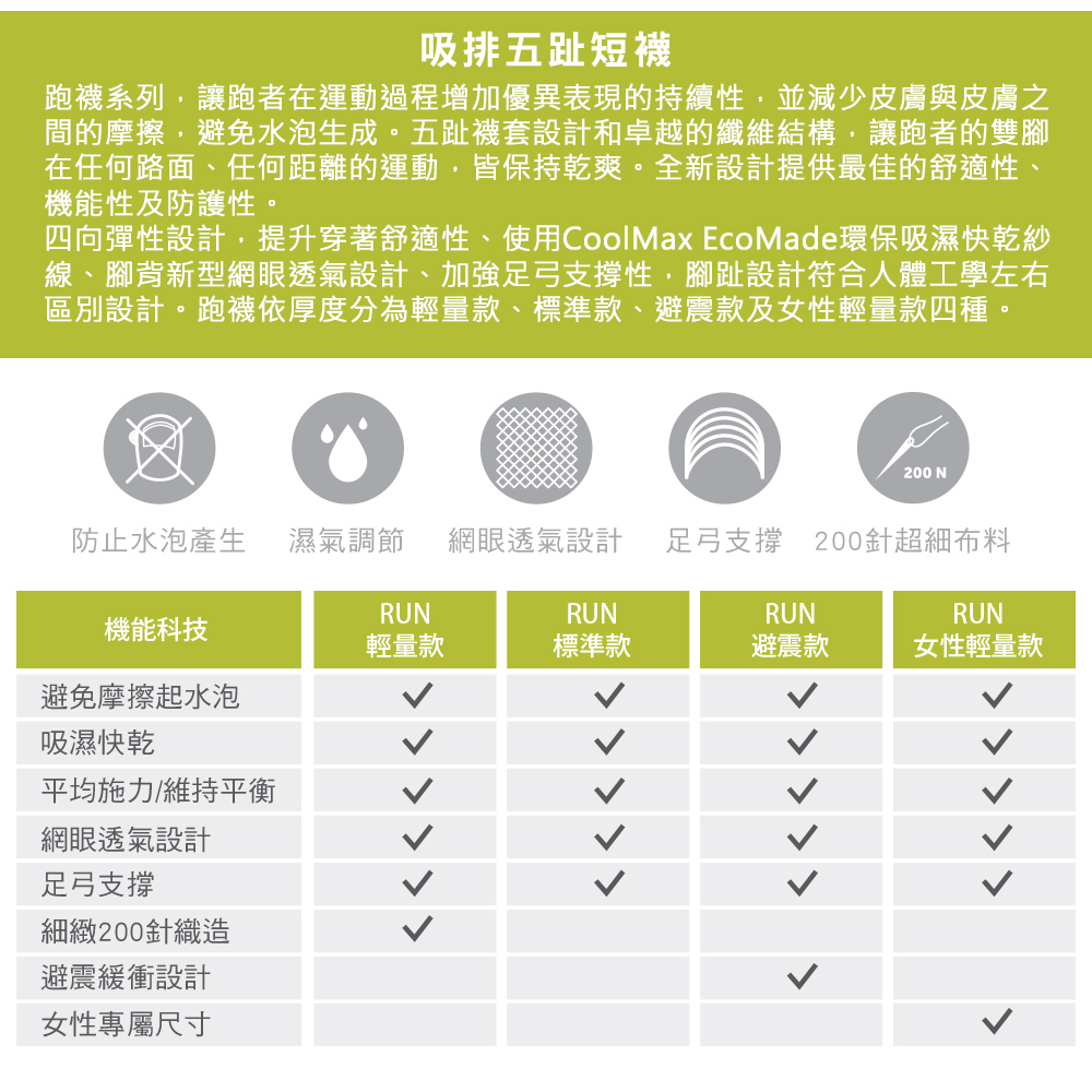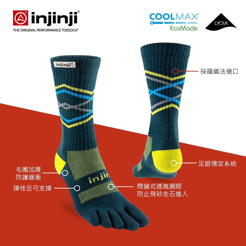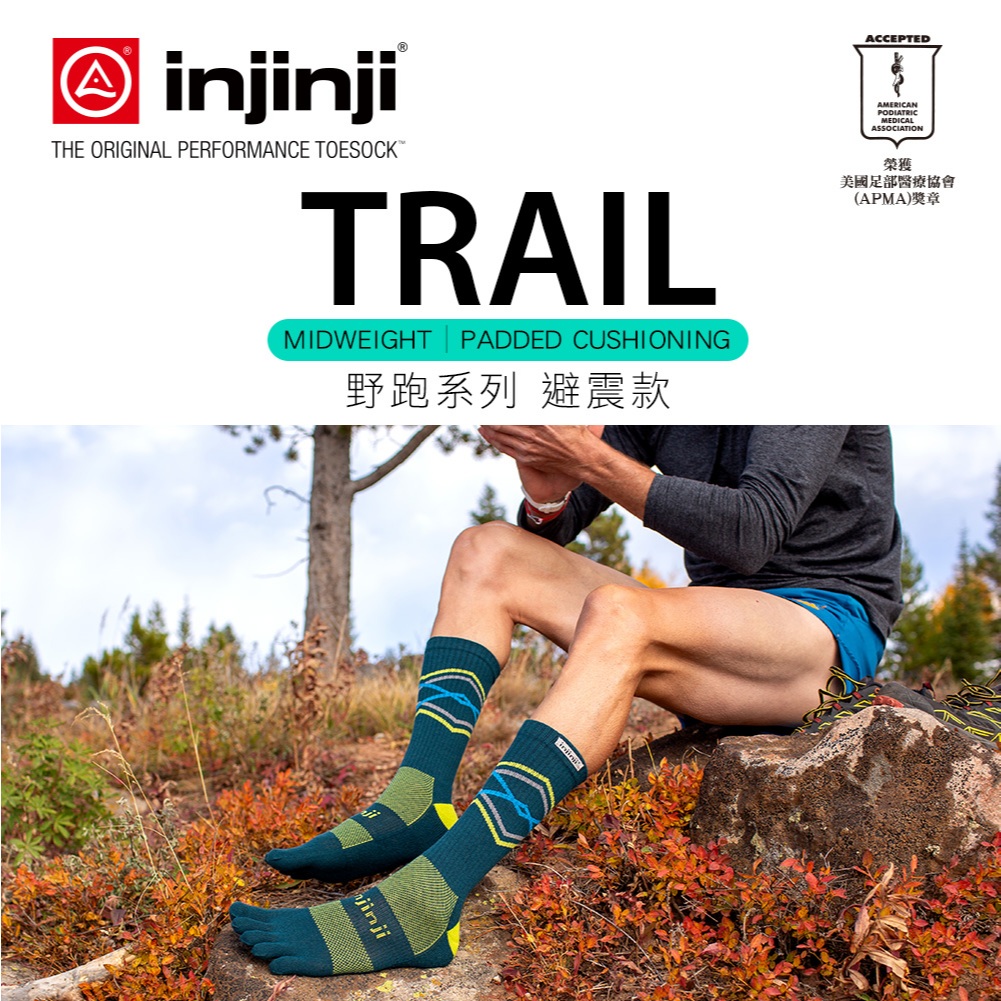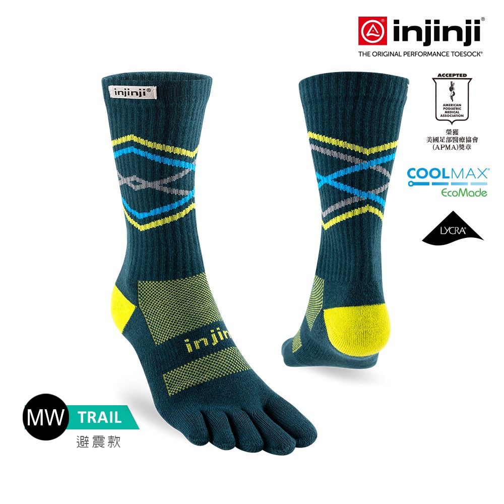 【injinji】Trail野跑避震吸排五趾中筒襪FX (墨綠)-NAA3738|厚底防震 運動員推薦 馬拉松 五趾襪S|M|L|XLGOHIKING戶外用品專賣店