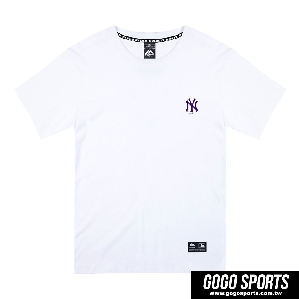 Majestic-洋基隊背後大LOGO標誌雙面印花短T-白(6960234)S|M|L|XL|2XLT-ShirtsGOGOSPORTS二號店