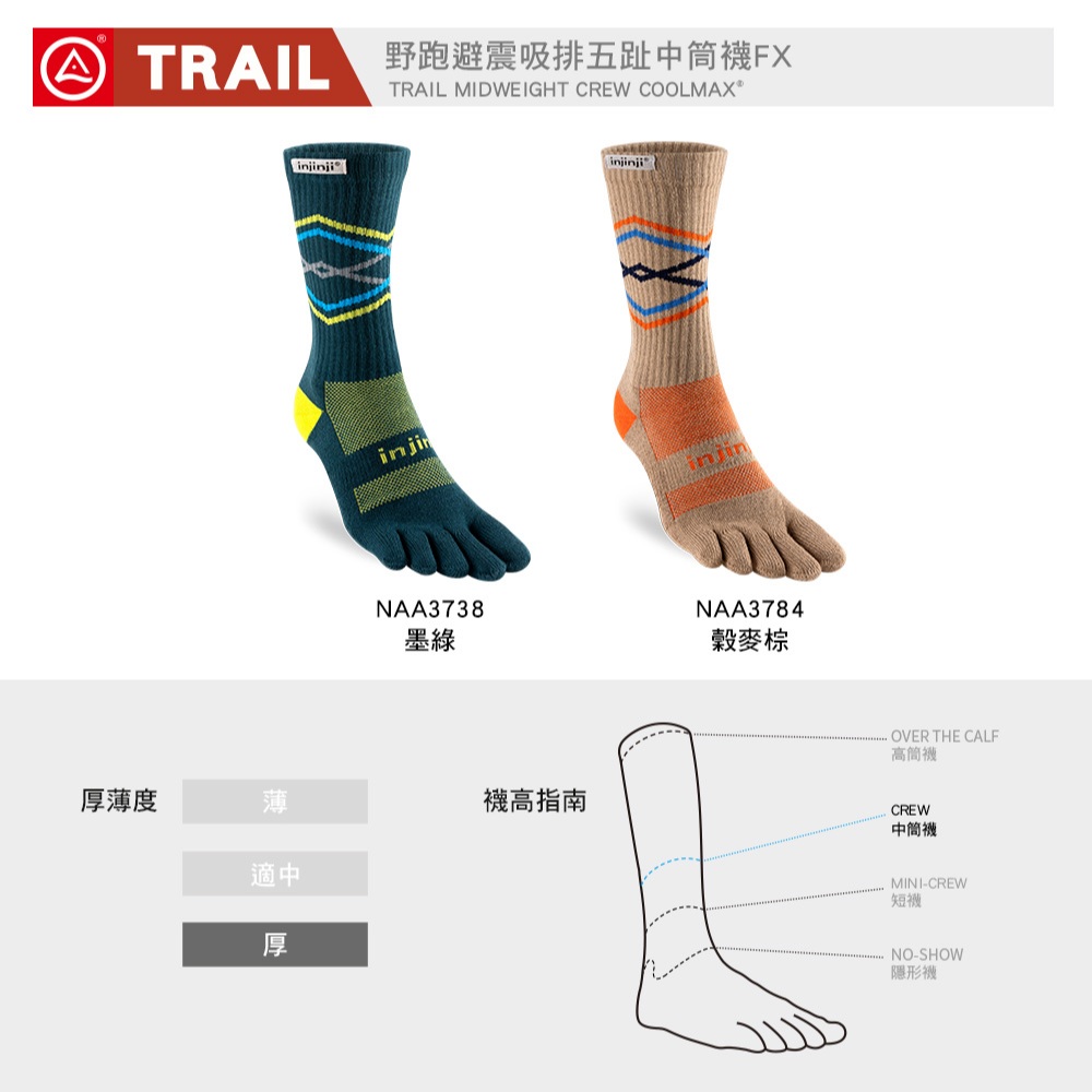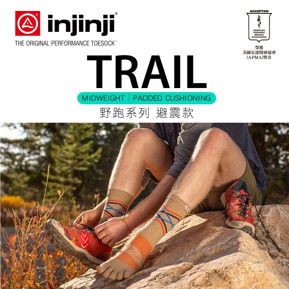 【injinji】Trail野跑避震吸排五趾中筒襪FX(穀麥棕)-NAA3784|厚底防震 運動員推薦 馬拉松 五趾襪L|S|MGOHIKING戶外用品專賣店