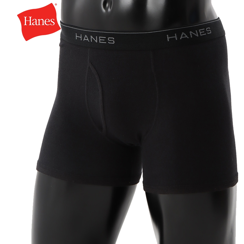 【Hanes】GLOBAL VALUE系列 磨毛貼身平口四角褲 經典設計款(黑底黑腰帶) 官方直營XL|M|LUnderwearHanes 台灣官方商城