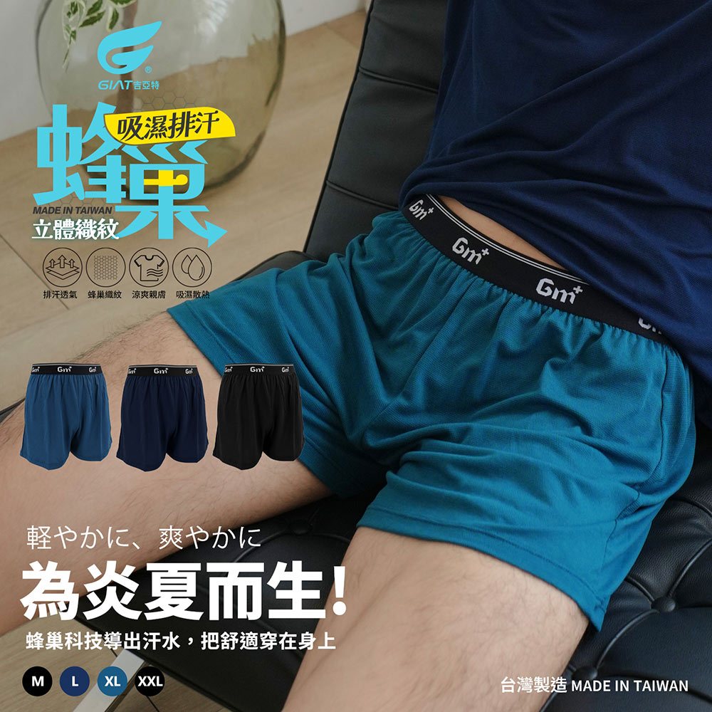 【GIAT】蜂巢排汗涼爽四角平口褲 男內褲 台灣製 透氣黑色,M|黑色,L|黑色,XL|黑色,XXL|深藍,M|深藍,L|深藍,XL|深藍,XXL|土耳其藍,M|土耳其藍,L|土耳其藍,XL|土耳其藍,XXLUnderwearGIAT吉亞特 官方旗艦店