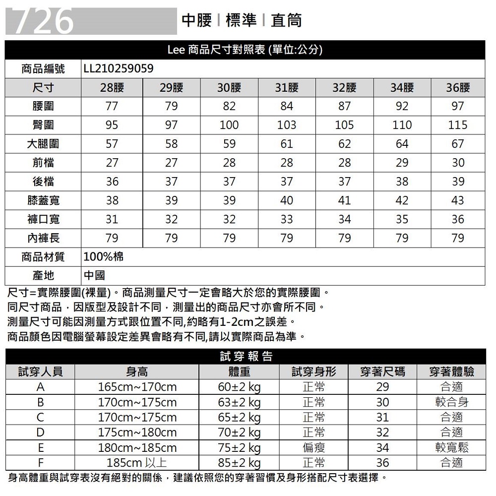 Lee 726 日本頂級丹寧布中腰標準直筒牛仔褲 男 101+ LL210259059