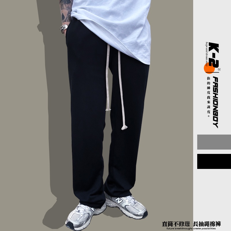【K-2】韓國 長抽繩 直筒棉褲 褲管不修邊 鬆緊抽繩 直筒褲 休閒長褲 棉褲 運動褲 闊腿褲 長褲【K28159】黑色,XL|灰色,M|灰色,L|灰色,XL|黑色,M|黑色,LPantsK-2 Fashionboy