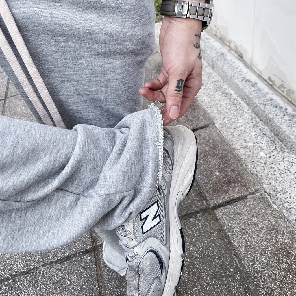 【K-2】韓國 長抽繩 直筒棉褲 褲管不修邊 鬆緊抽繩 直筒褲 休閒長褲 棉褲 運動褲 闊腿褲 長褲【K28159】