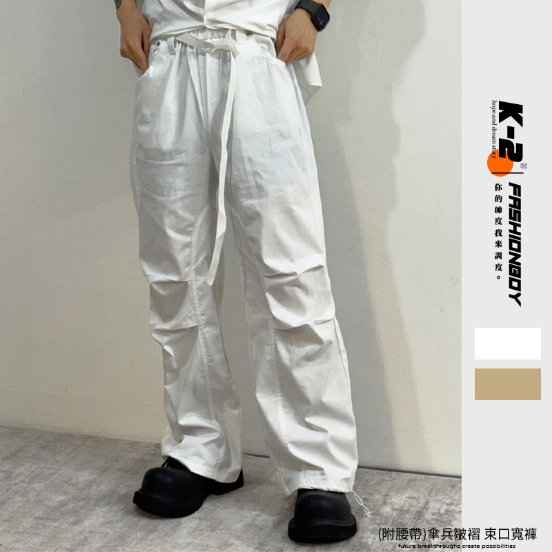 【K-2】(附腰帶)傘兵皺褶 直筒寬褲 束口長褲 直筒褲 休閒長褲 寬褲 闊腿褲 長褲 束口褲 Y2K K【K3391】白色,M|白色,L|白色,XL|卡其色,M|卡其色,L|卡其色,XLCargoK-2 Fashionboy