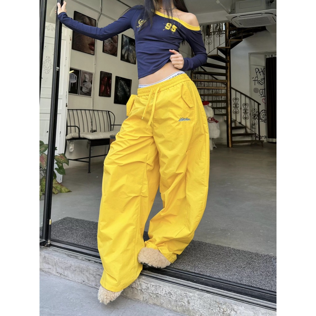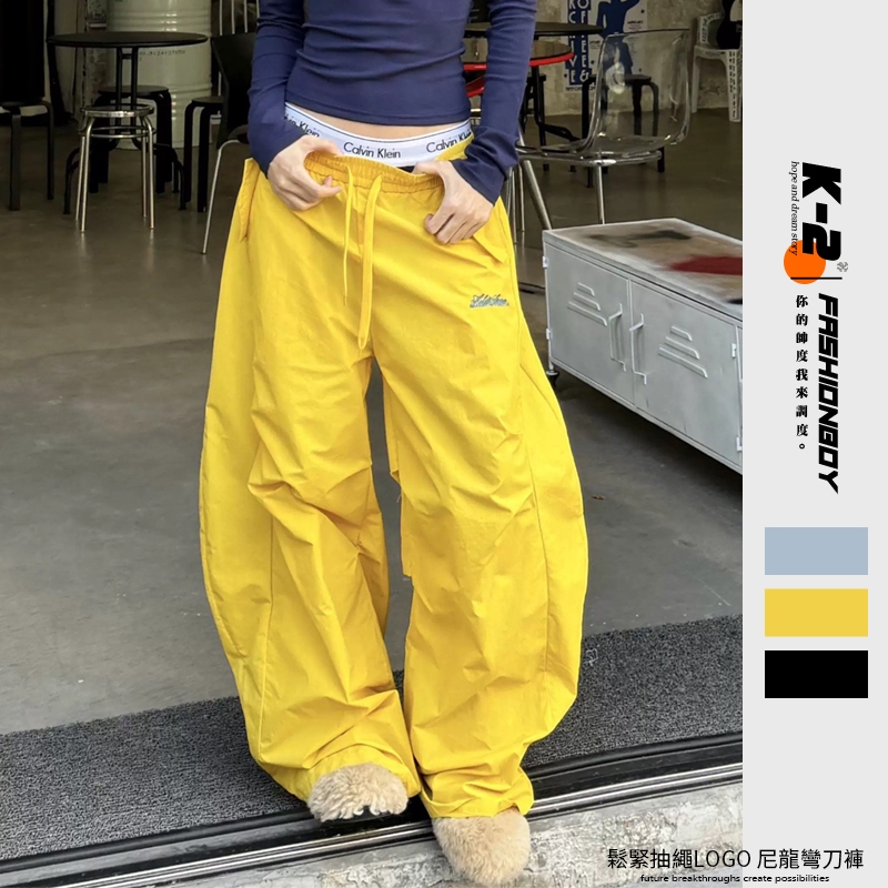 【K-2】美式休閒 刺繡LOGO 鬆緊抽繩 尼龍彎刀褲 闊腿褲 彎刀褲 尼龍 休閒長褲 寬褲 長褲 K2【JB3032】淺藍色,M|淺藍色,L|淺藍色,XL|淺藍色,XXL|黃色,M|黃色,L|黃色,XL|黃色,XXL|黑色,M|黑色,L|黑色,XL|黑色,XXLPantsK-2 Fashionboy