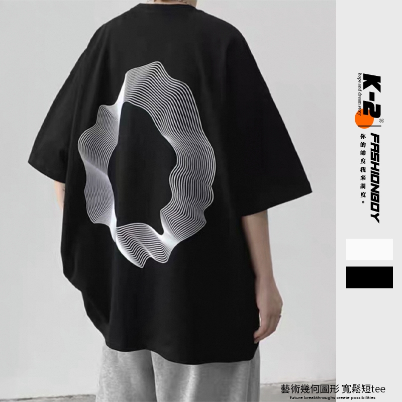 【K-2】藝術 幾何圖形 落肩 精梳棉 短T 線條 波動感 前後印花 寬鬆短T Y2K 復古上衣 K2【J3532】白色,M|白色,L|白色,XL|白色,XXL|黑色,M|黑色,L|黑色,XL|黑色,XXLT-ShirtsK-2 Fashionboy