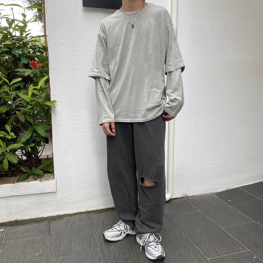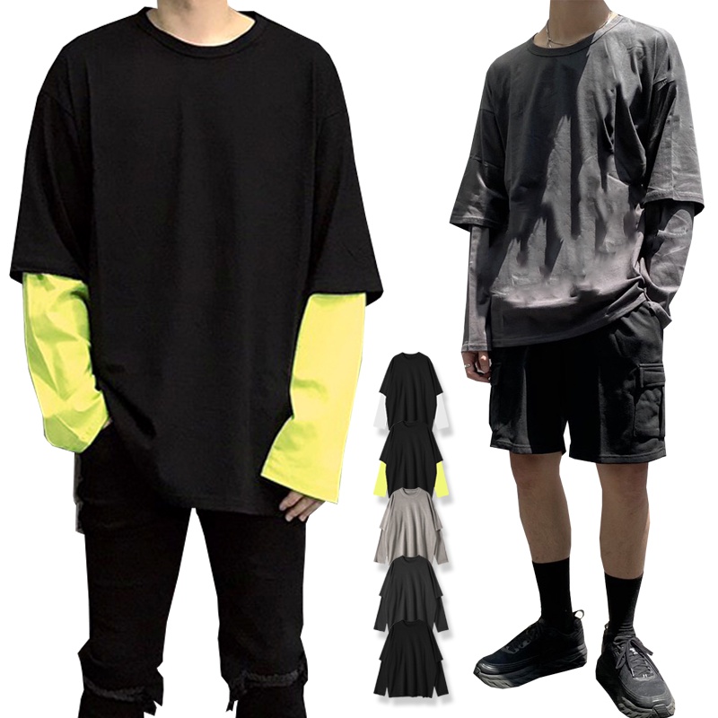 【K-2】IGO 假兩件 薄長T CITYBOY 寬鬆 落肩 長袖T恤 銀光綠 男女不拘 素T 忍者【K0014】黑白色,M|黑白色,L|黑銀光綠色,M|黑銀光綠色,L|深灰色,M|深灰色,L|淺灰色,M|淺灰色,L|黑色,M|黑色,LT-ShirtsK-2 Fashionboy