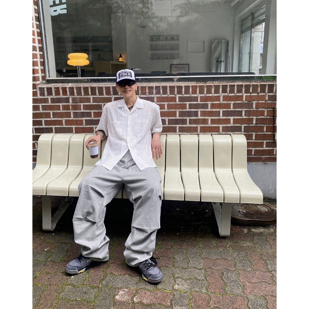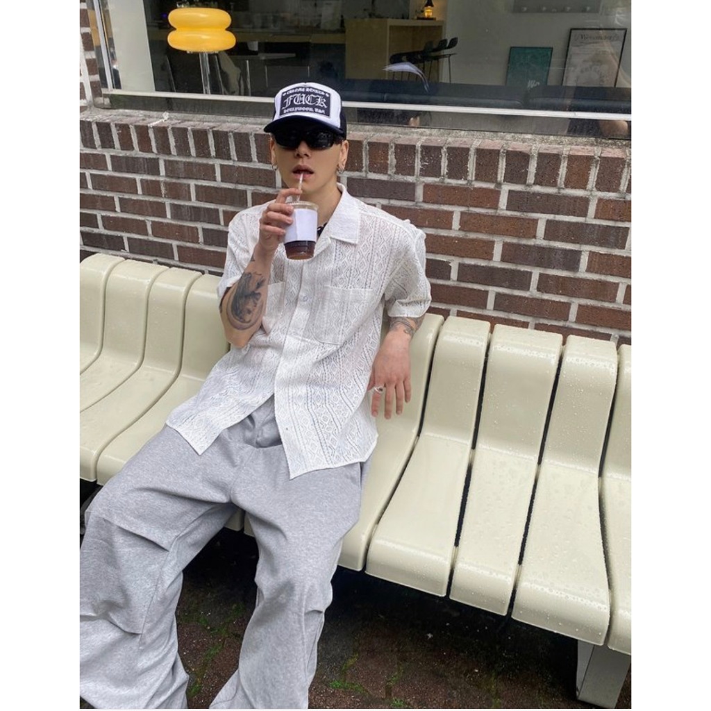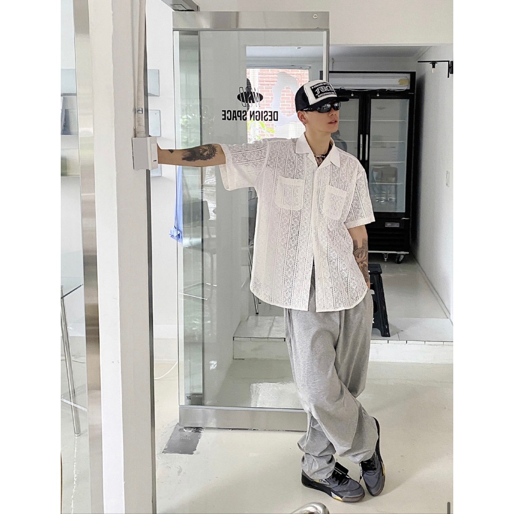 【K-2】INS 小眾穿搭 窗花 蕾絲 簍空襯衫 Y2K 雙口袋 短袖襯衫 蕾絲襯衫 簍空 復古圖騰 男女【K2R06】白色|黑色ShirtsK-2 Fashionboy