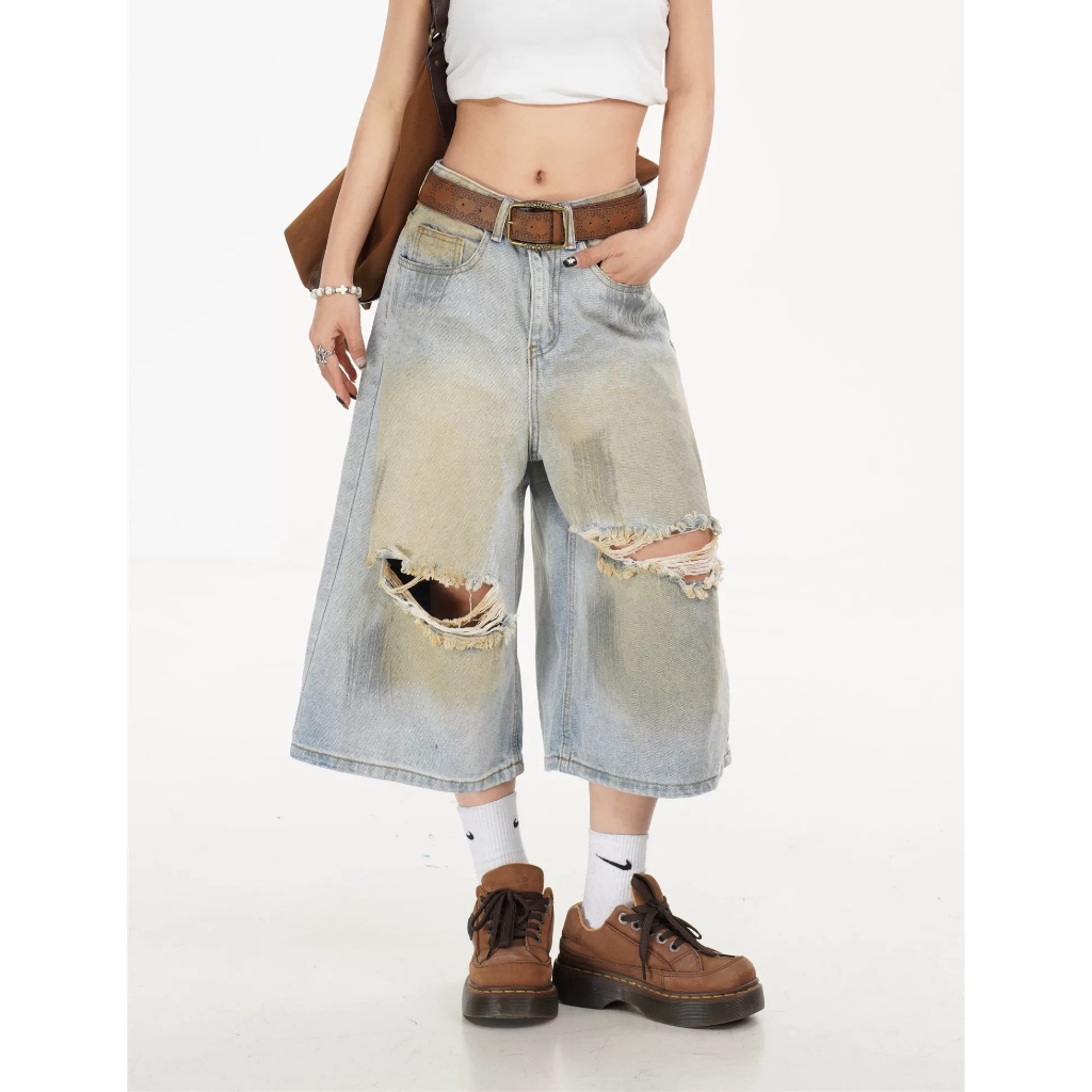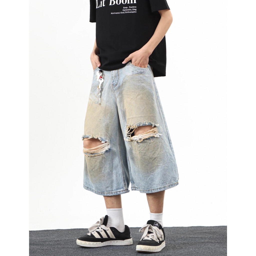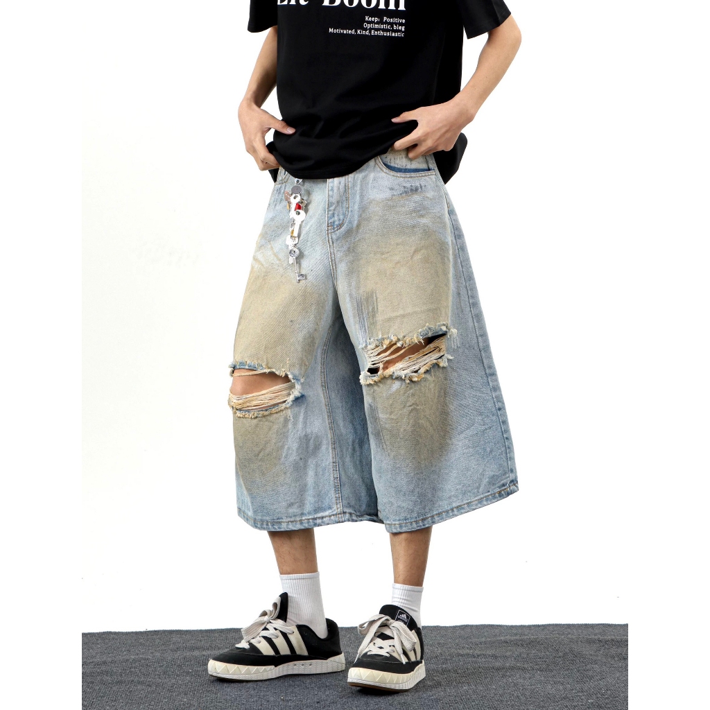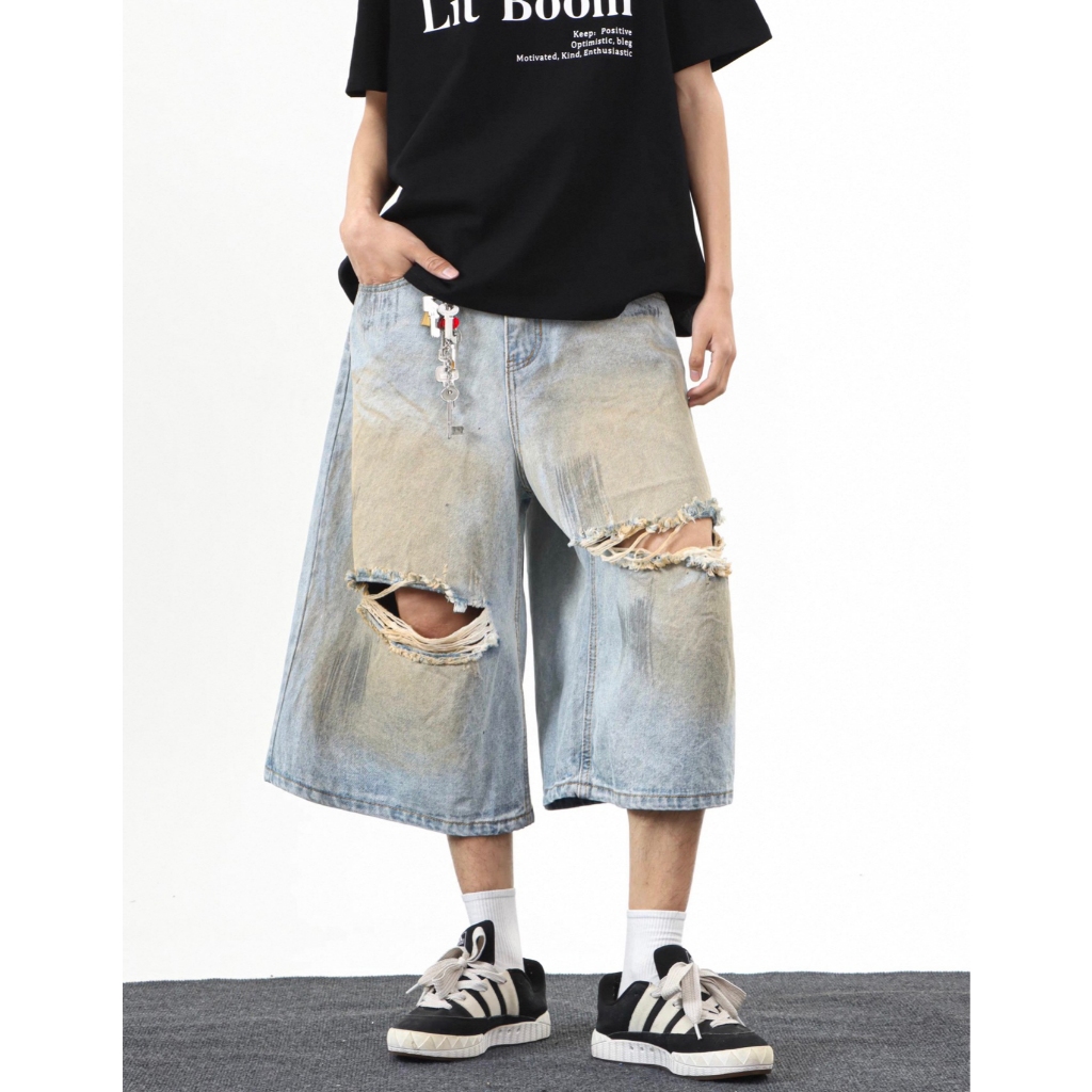 【K-2】CITYBOY 美式復古 黃泥刷色 牛仔七分褲 雙破壞 刷色 牛仔破褲 短褲 七分褲 牛仔褲【JB3030】M|L|XL|XXLK-2 Fashionboy