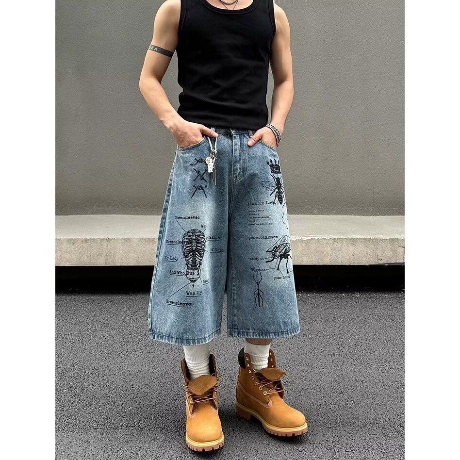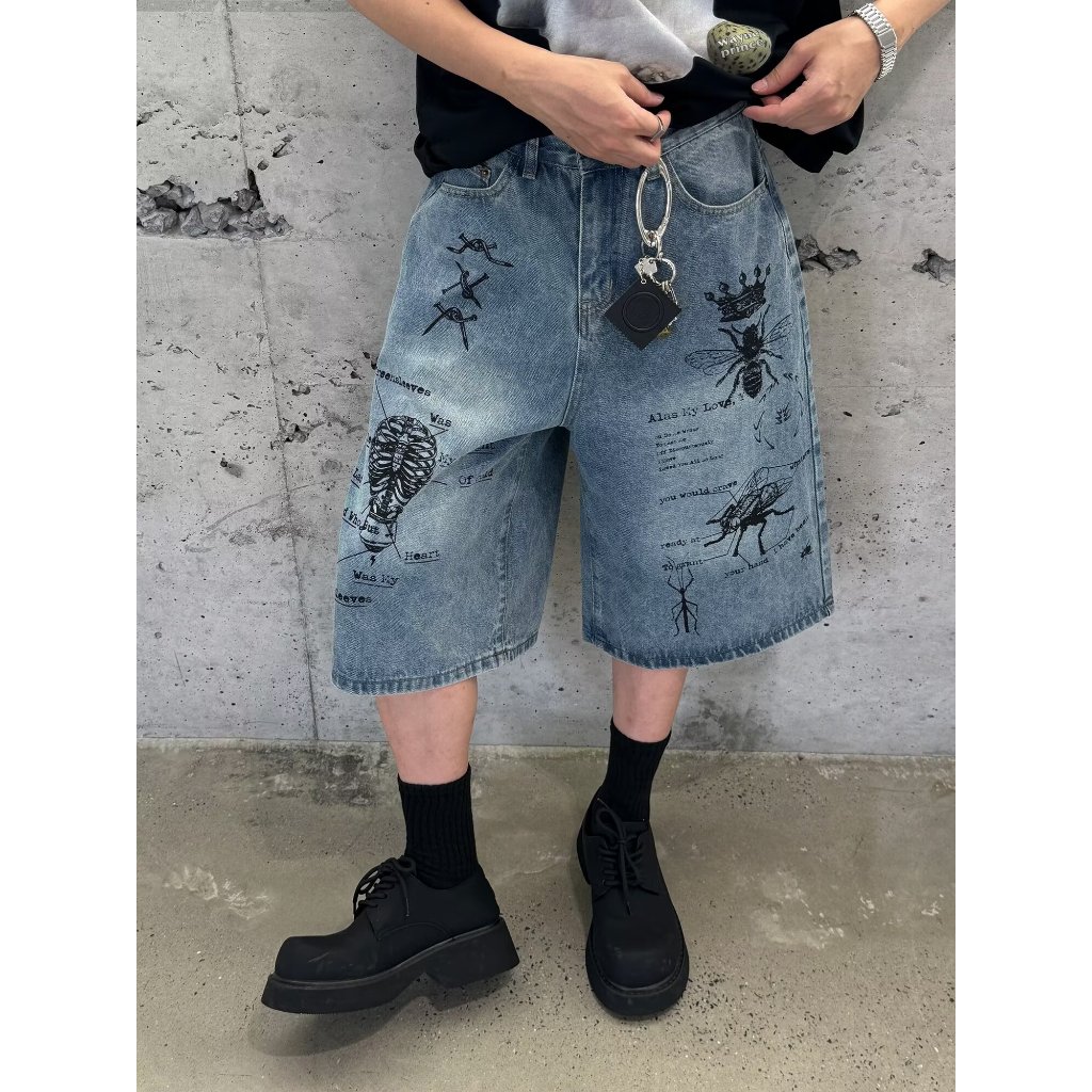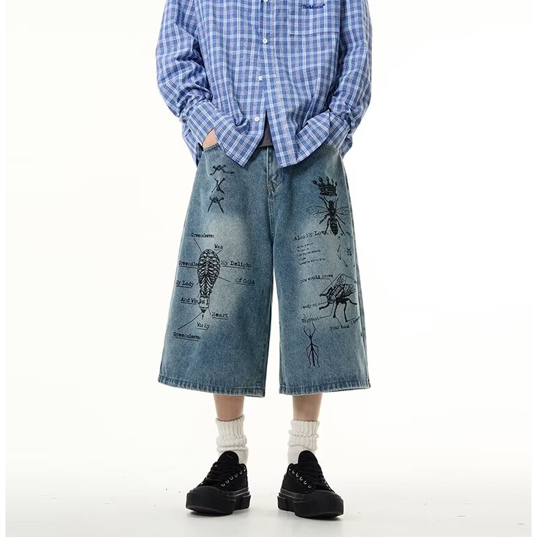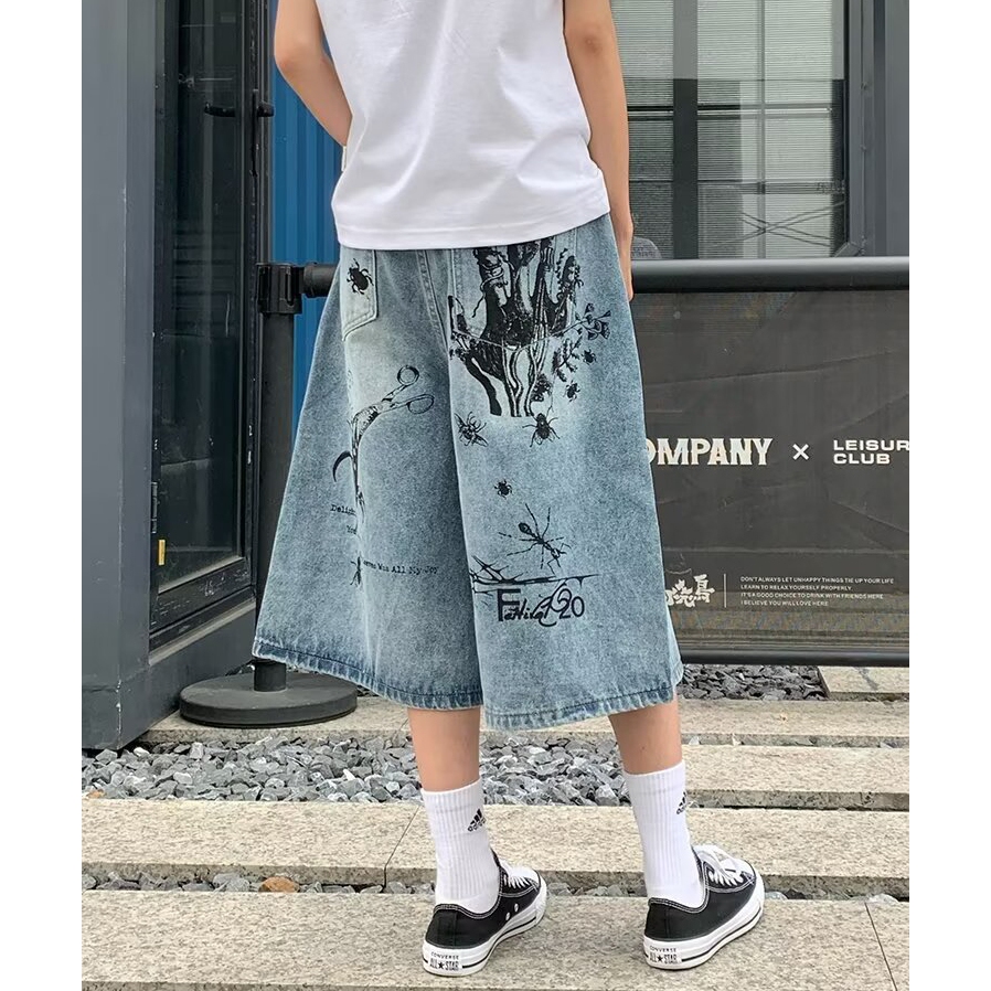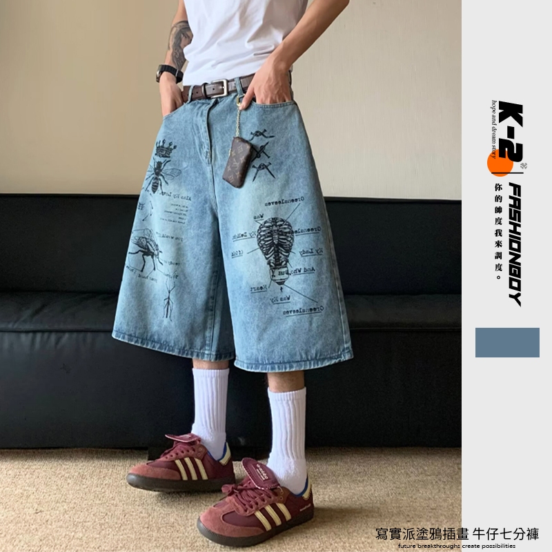 【K-2】CITYBOY 寫實派塗鴉 插畫 七分褲 牛仔褲 牛仔短褲 牛仔七分褲 街頭穿搭 塗鴉牛仔褲 K2【JF75】M|L|XL|XXLK-2 Fashionboy