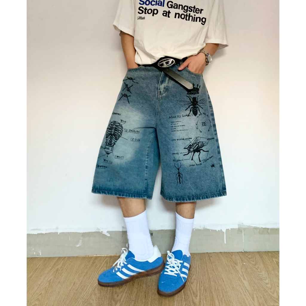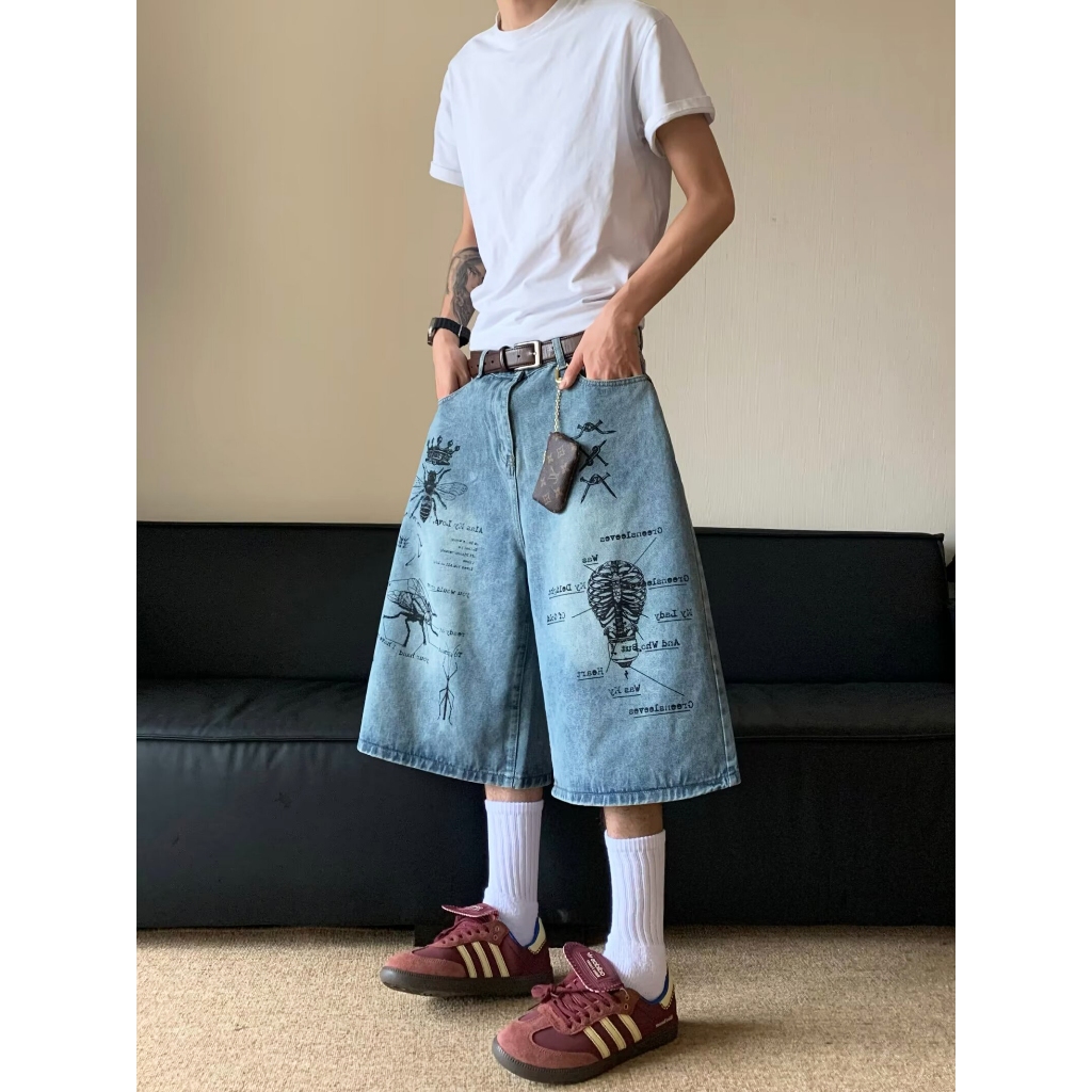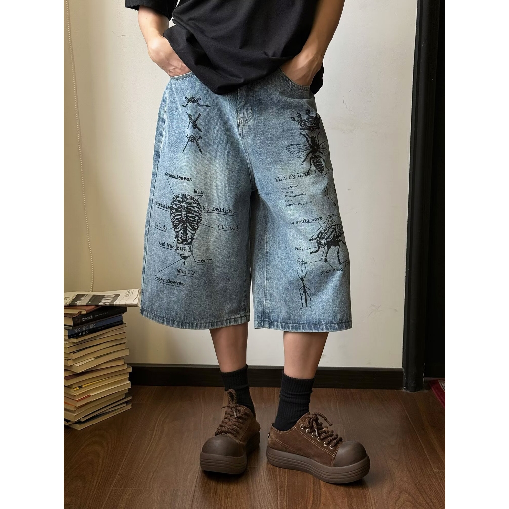 【K-2】CITYBOY 寫實派塗鴉 插畫 七分褲 牛仔褲 牛仔短褲 牛仔七分褲 街頭穿搭 塗鴉牛仔褲 K2【JF75】M|L|XL|XXLK-2 Fashionboy